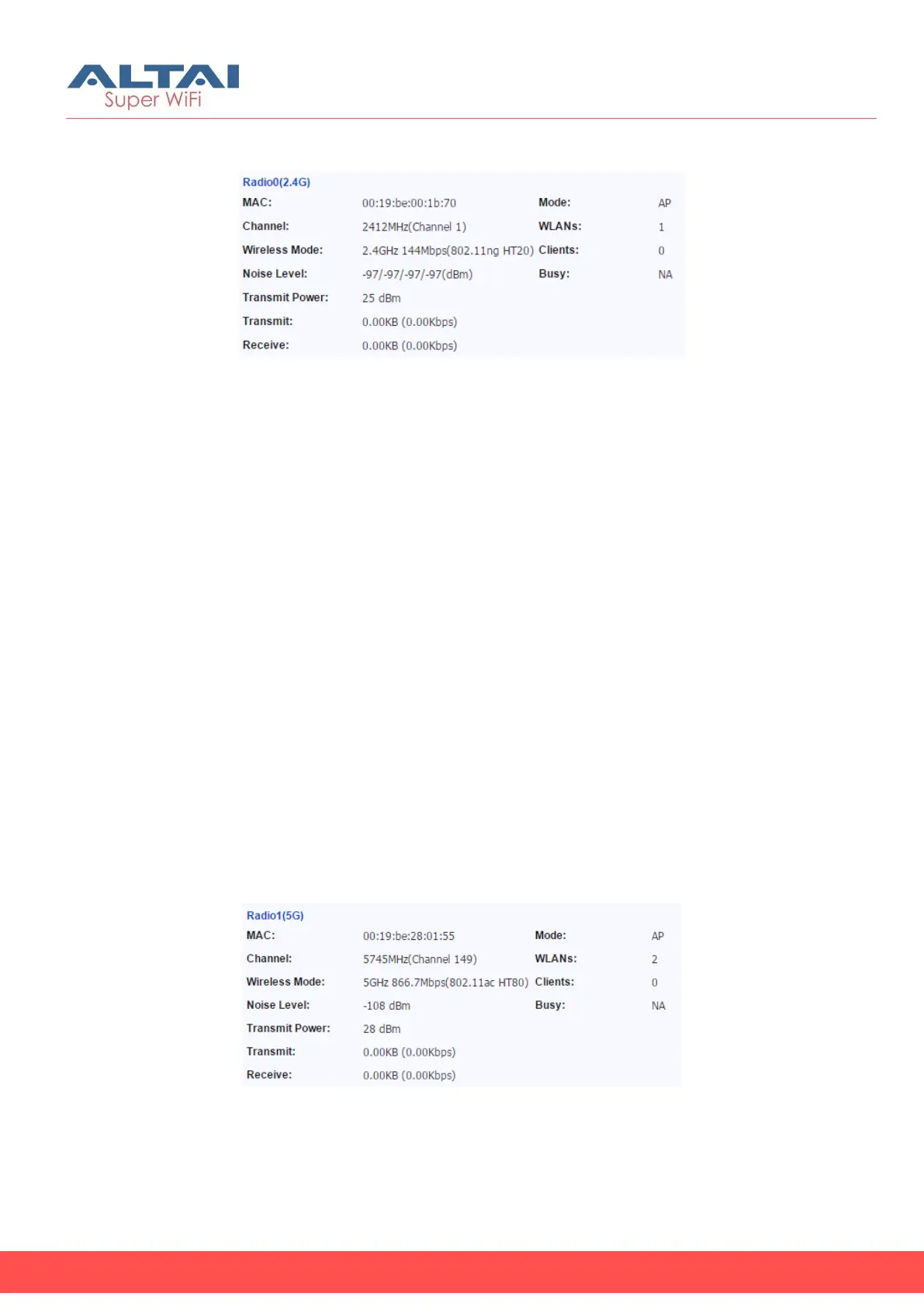 AP SNR – indicate received SNR from remote AP (Station mode only)