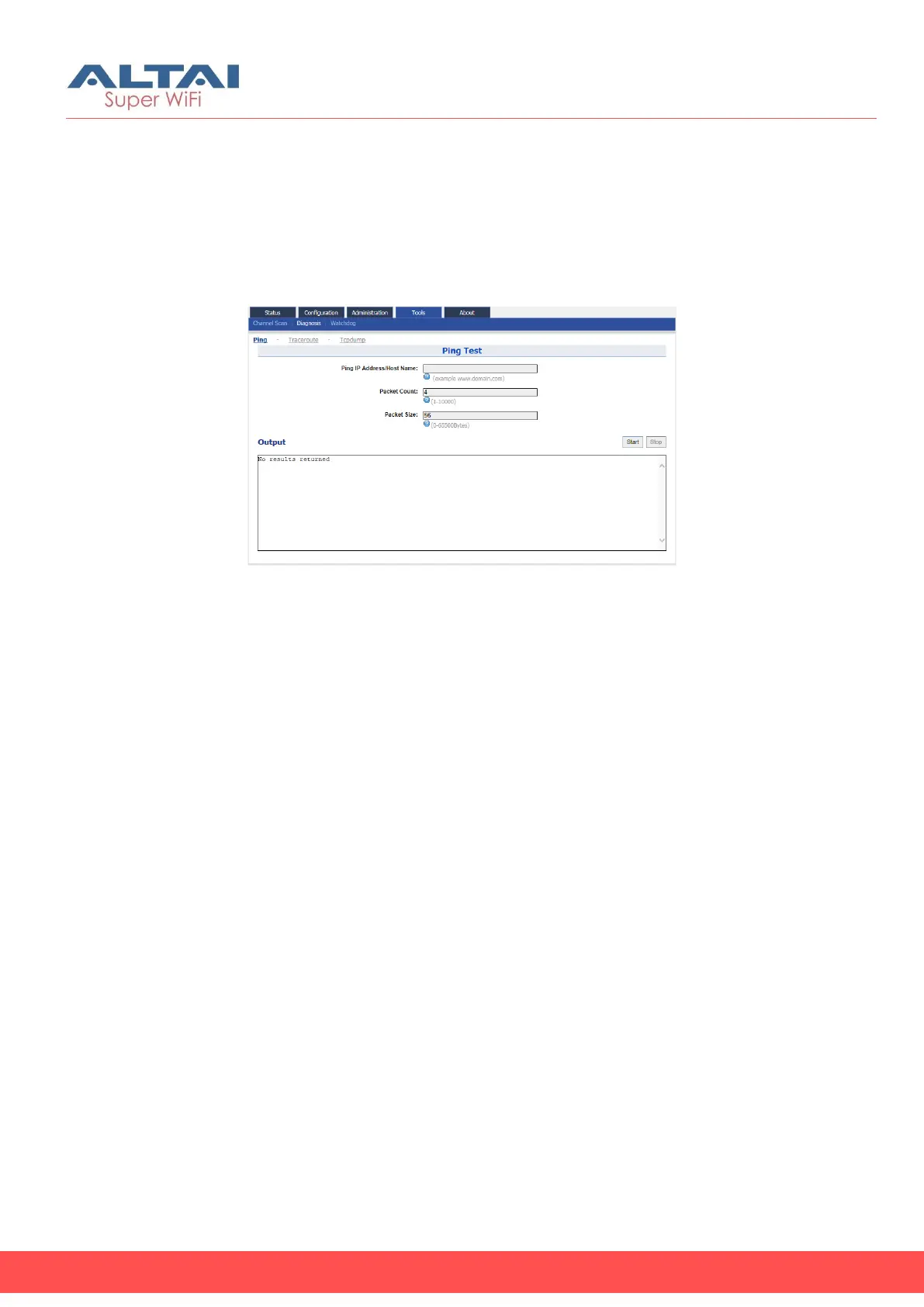 6. Click Stop to terminate ping test if necessary