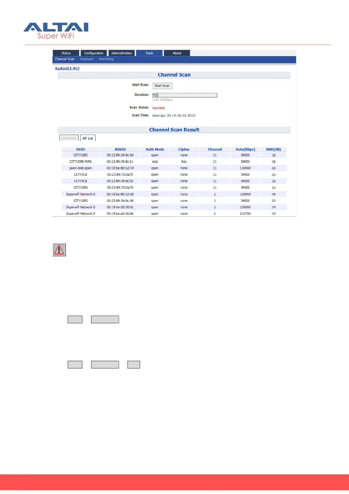 Caution: During the process of channel scan, all WiFi clients associated to C1n