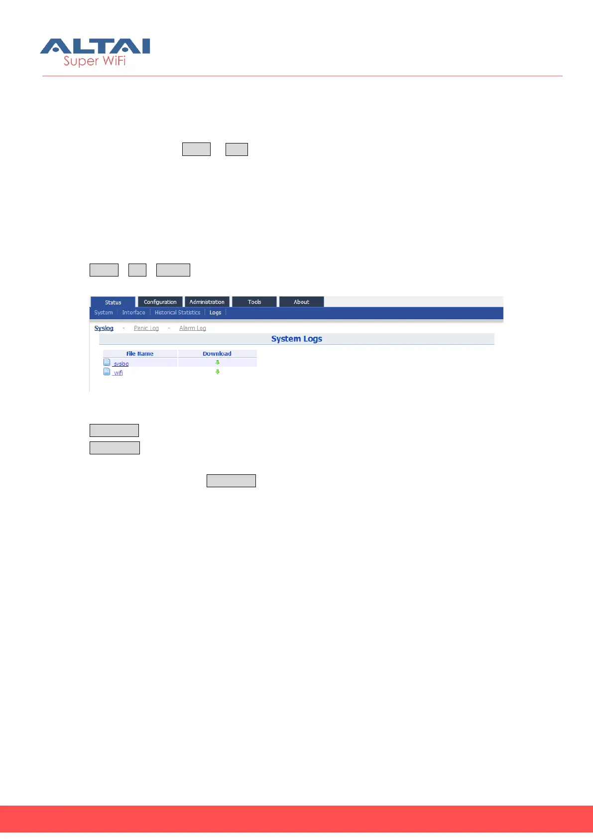 function. Selecting Status -> Logs, you will find 3 sub-items below: SysLog, Panic Log,