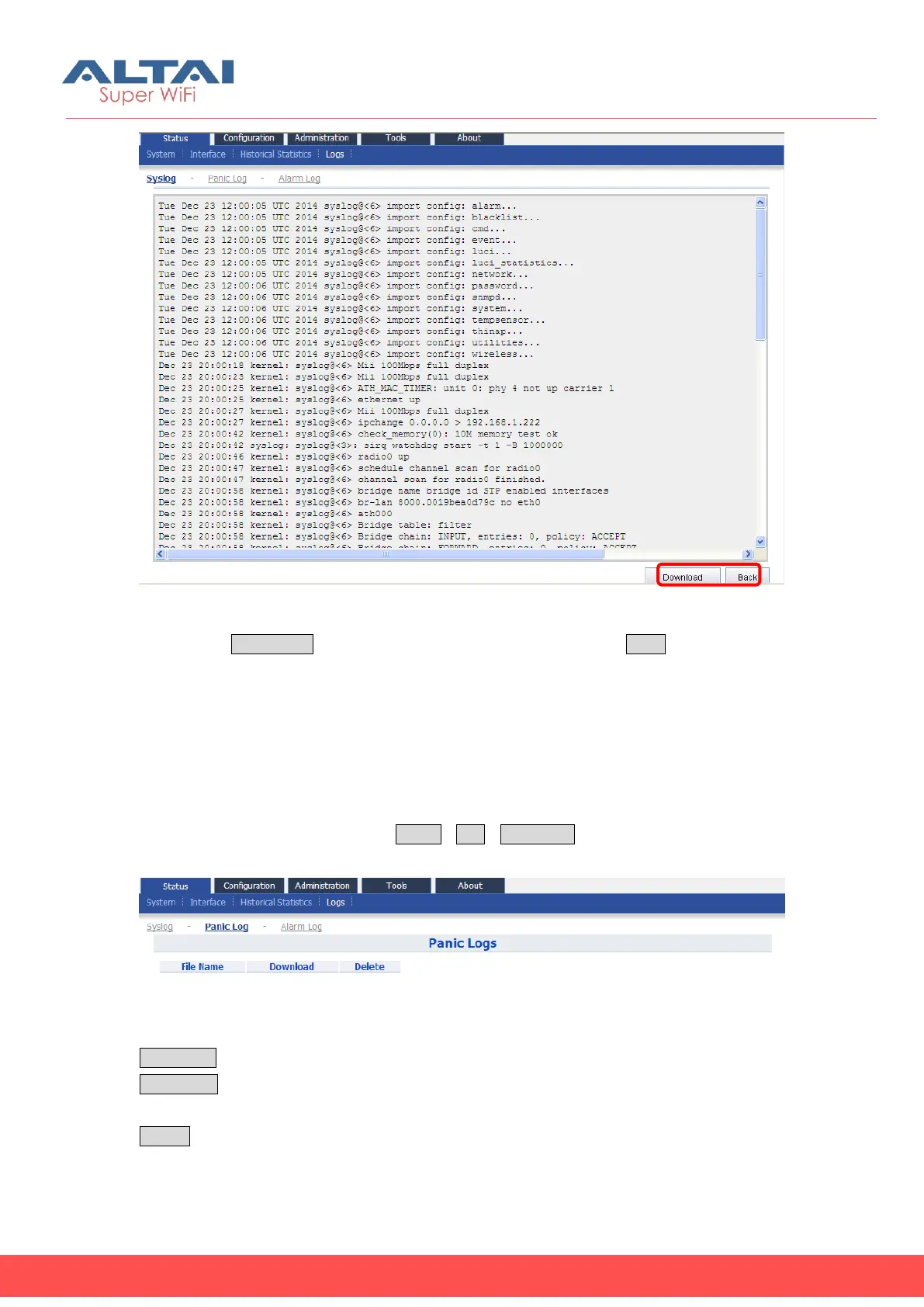 Figure 4-34 System Log “Download and Back” Button