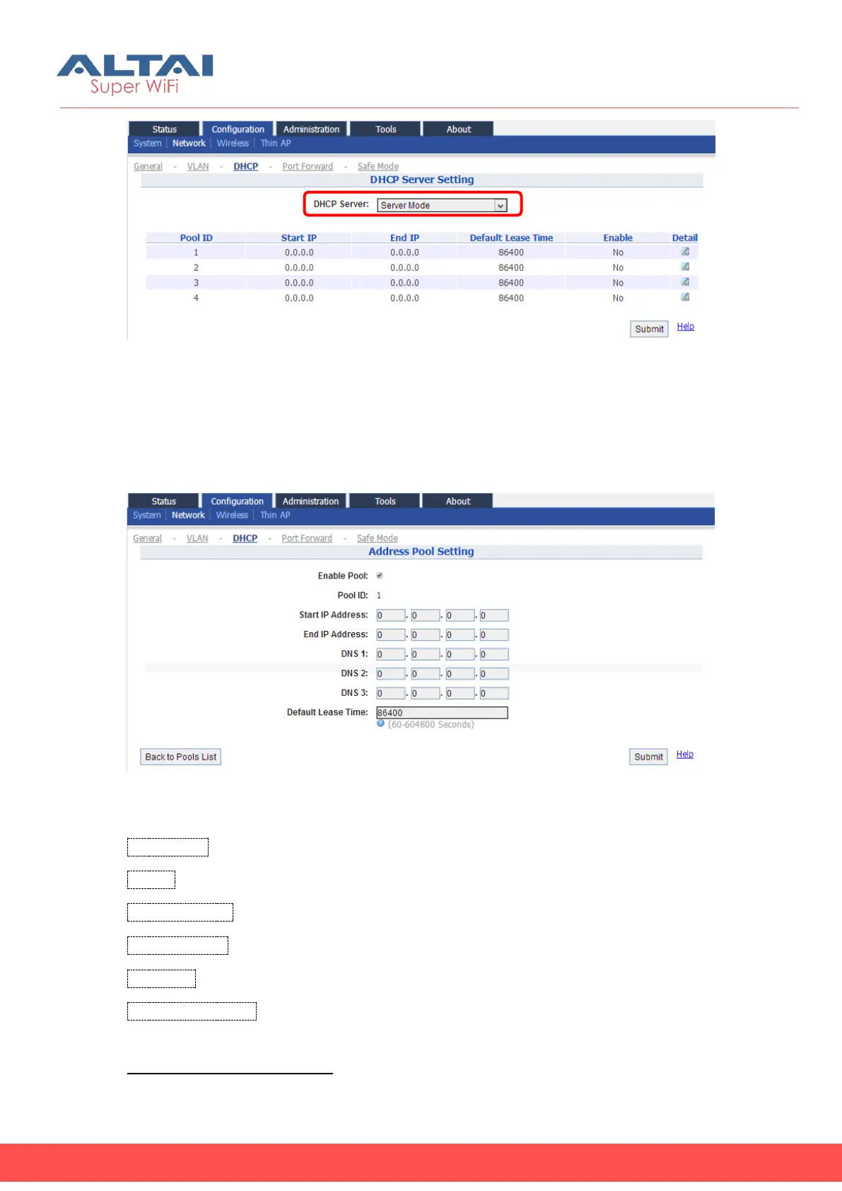 If the DHCP Server Mode is set to Server, then the C1n Series CPE/AP will act as a