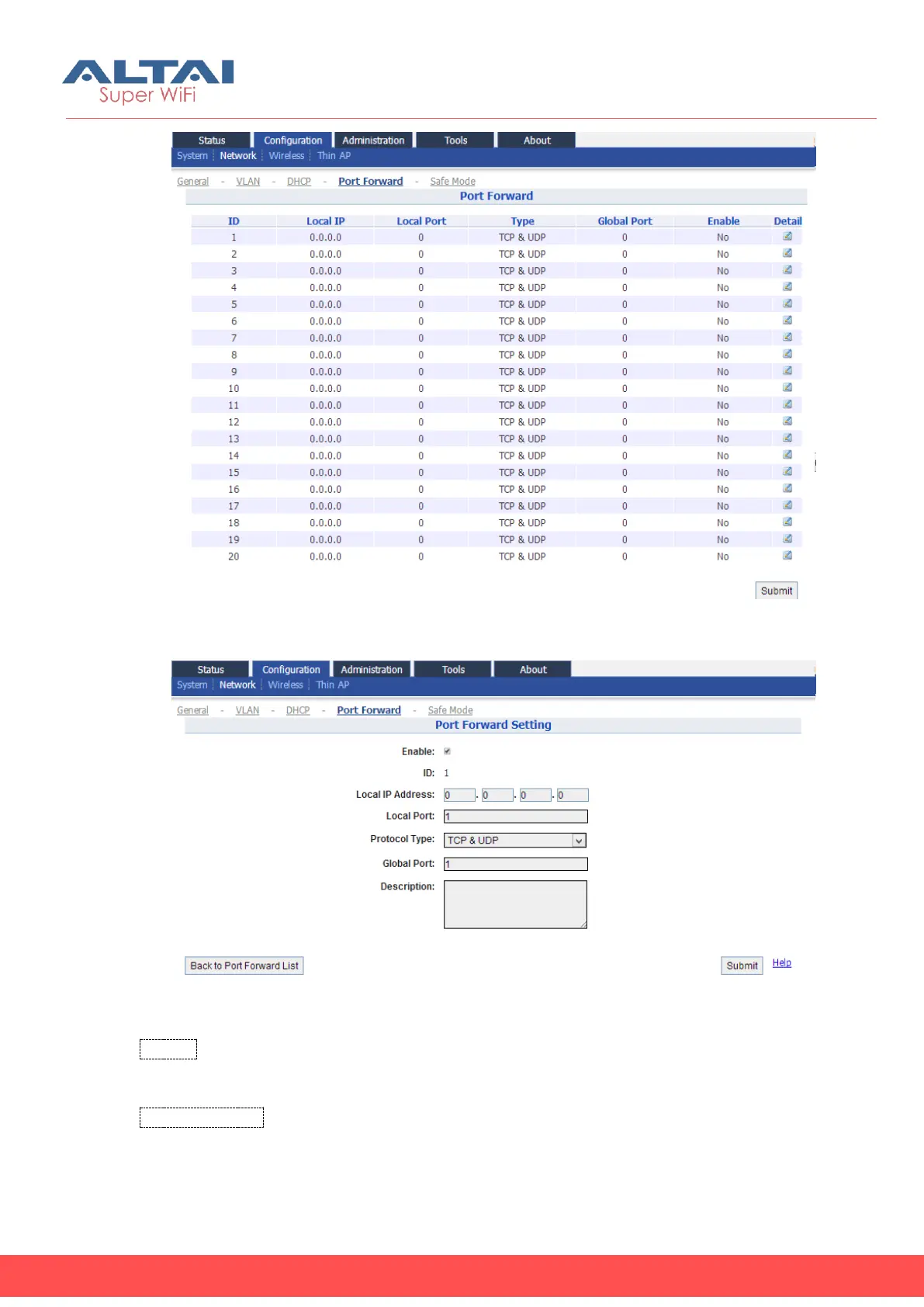 Figure 5-12 Port Forwarding Setting
