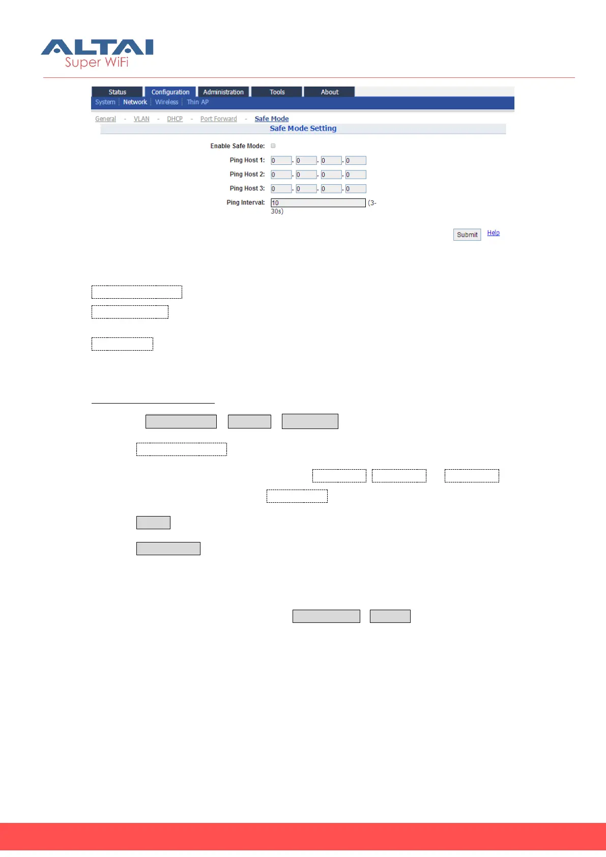 Ping Interval: Specify the ping interval of safe mode from 3s to 30s. Default setting is
