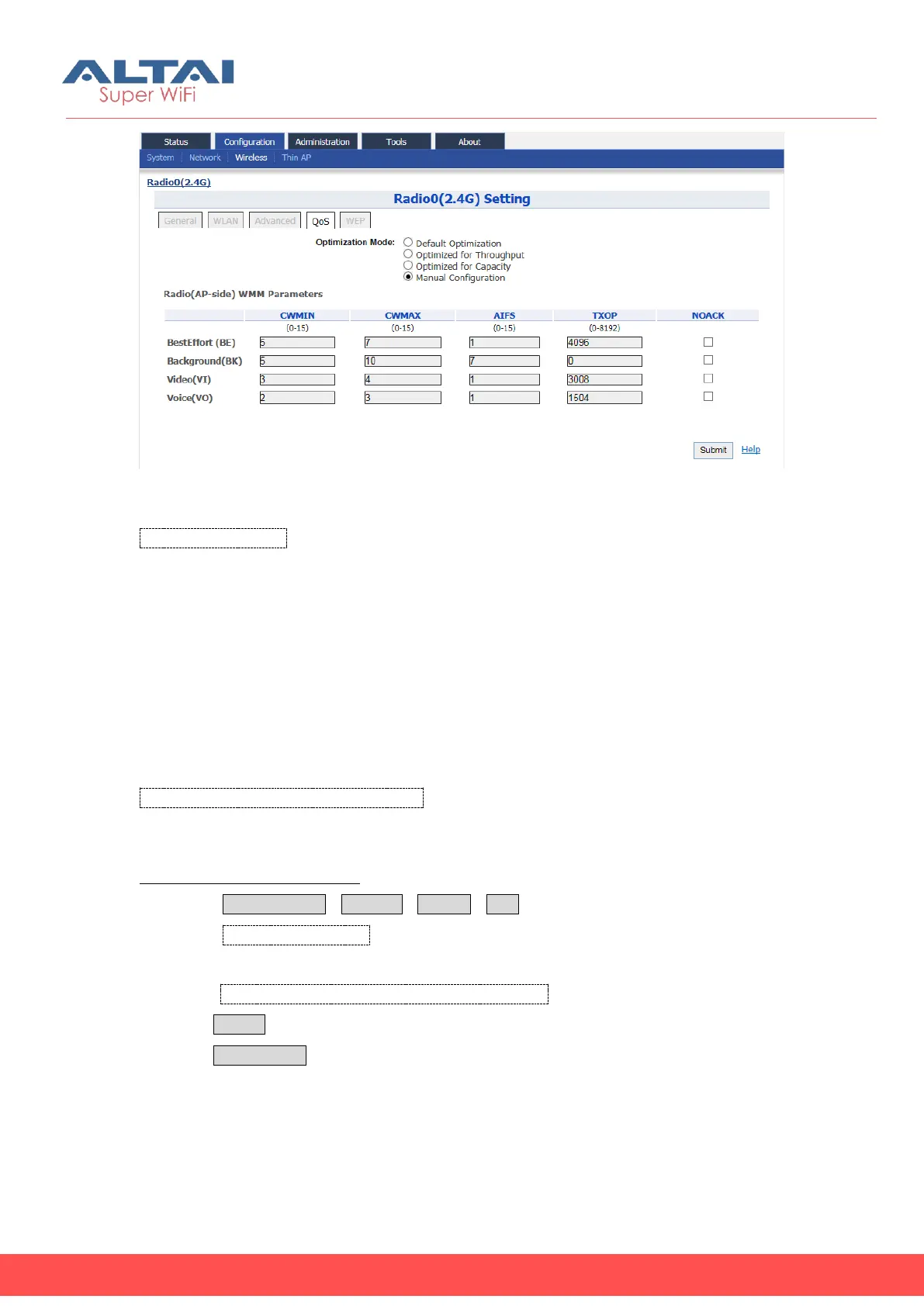3. When select “Manual Configuration” Specify the Radio(AP-side) WMM Parameters