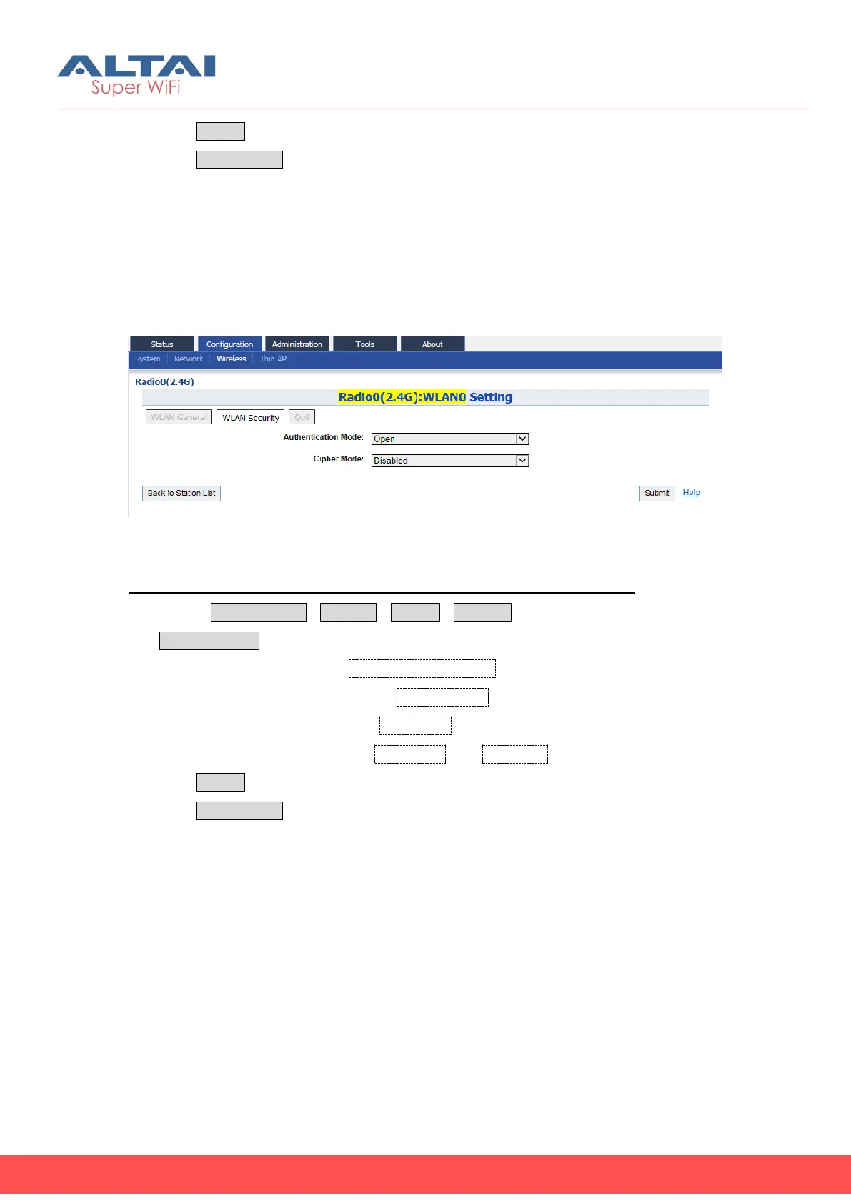 1. Select ConfigurationWirelessRadio0Station to click “More…”then select