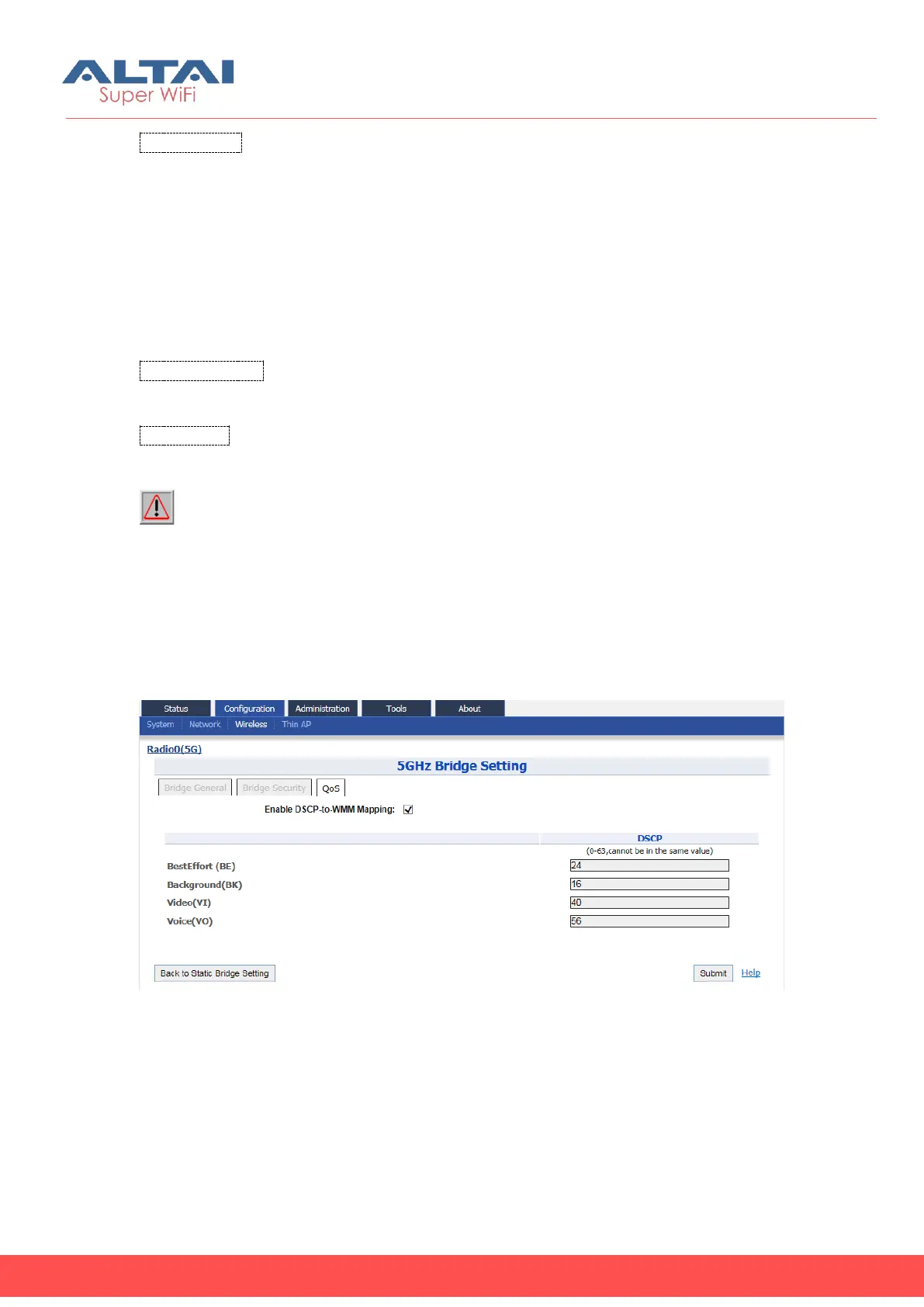 The QoS configuration in Bridge mode is as the same as that in AP mode. For the