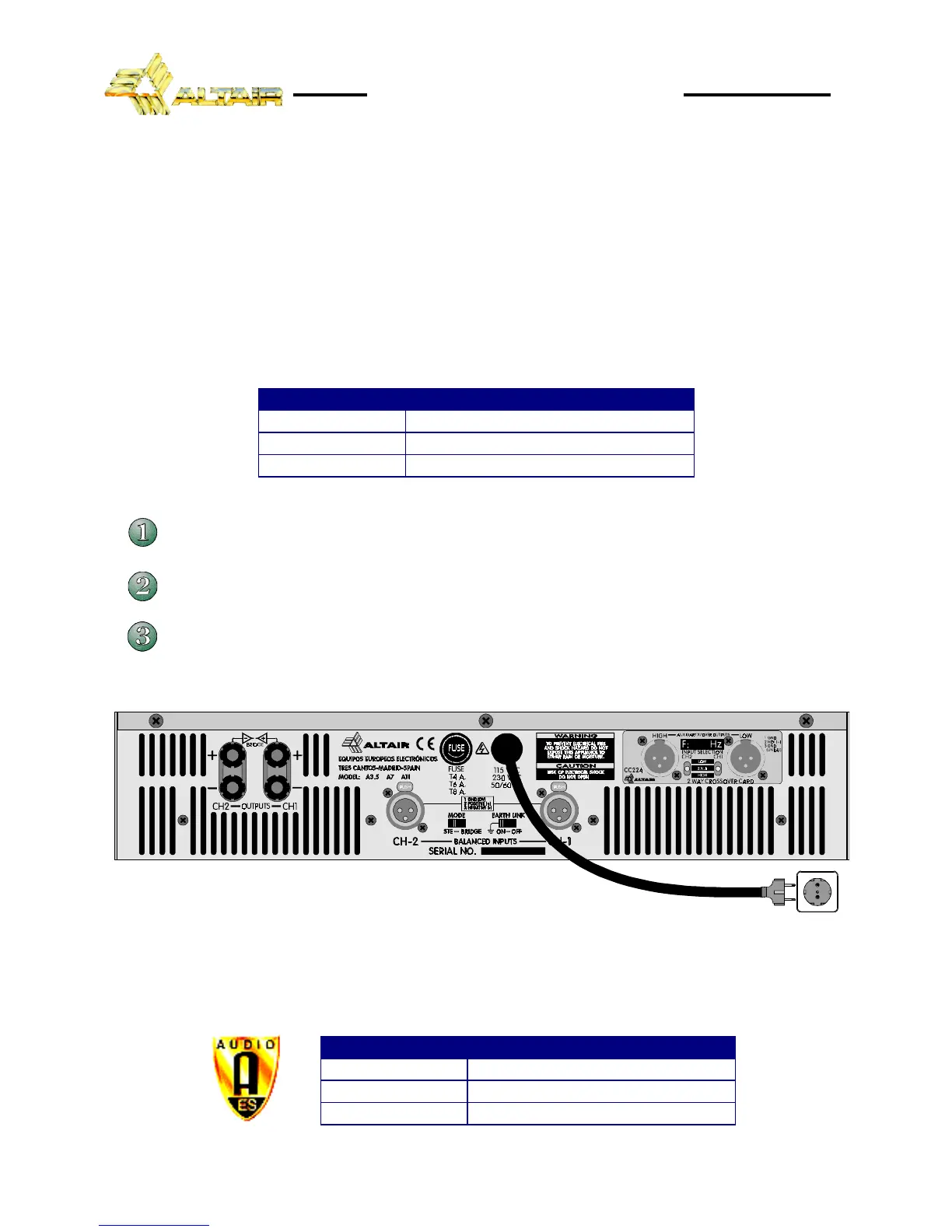 The connection of the power amplifier to the mains takes place by means of a three-wire cord