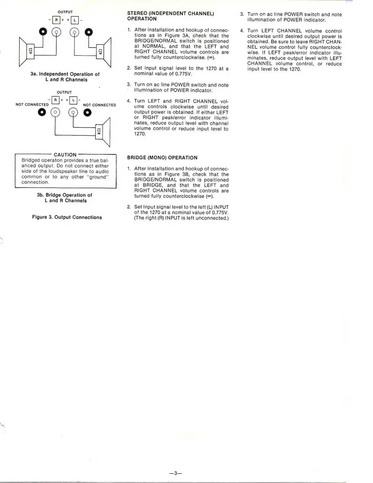 Altec Lansing 1270 - Amplifier Operation Procedures; Stereo (Independent Channel) Operation; Bridge (Mono) Operation
