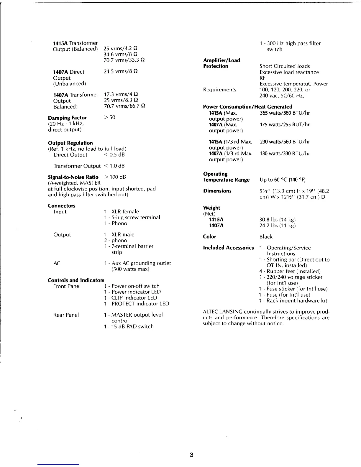 Other manuals for Altec Lansing 1407A POWER AMPLIFIER
