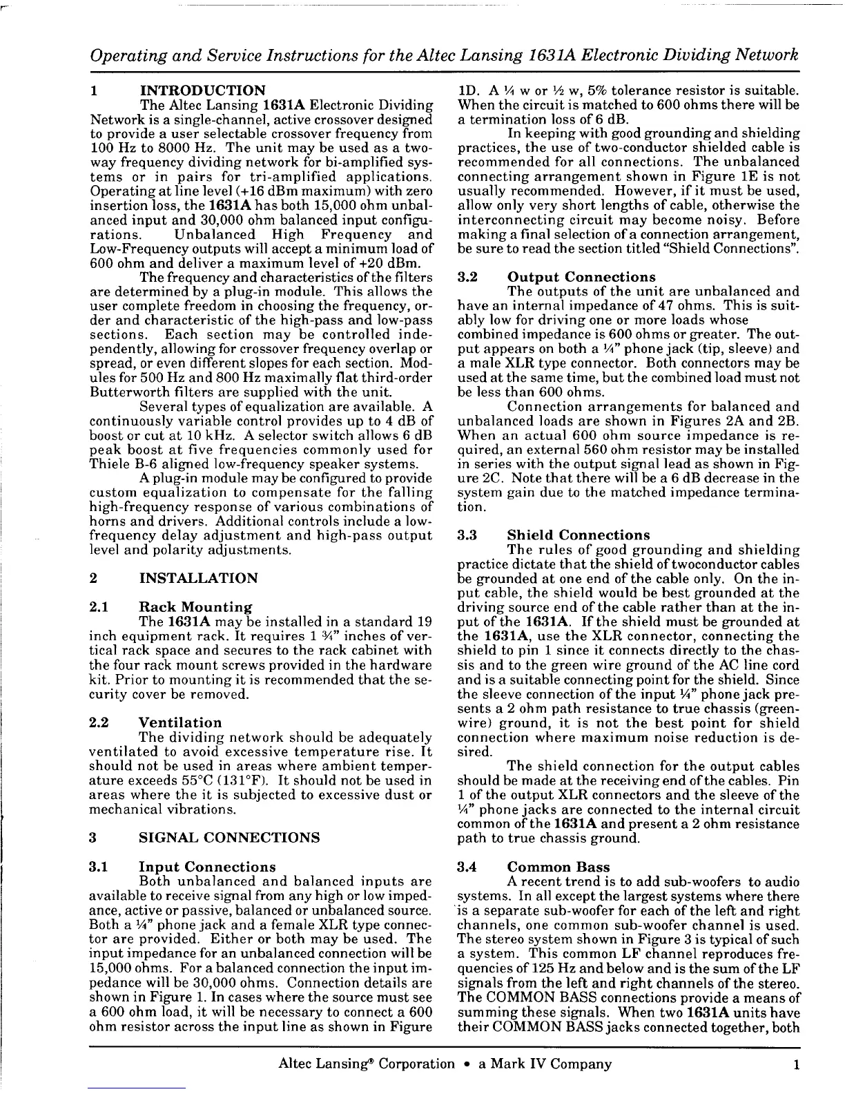 Altec Lansing 1631A SIGNAL PROCESSING - INTRODUCTION; INSTALLATION; Rack Mounting; Ventilation