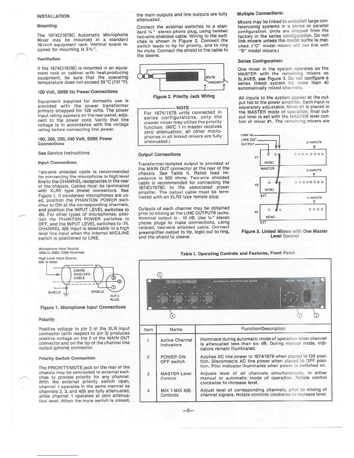 Altec Lansing 1678C SIGNAL PROCESSING - Installation; Mounting and Ventilation Requirements; Power and Input Connections; Priority and Mute Jack Wiring