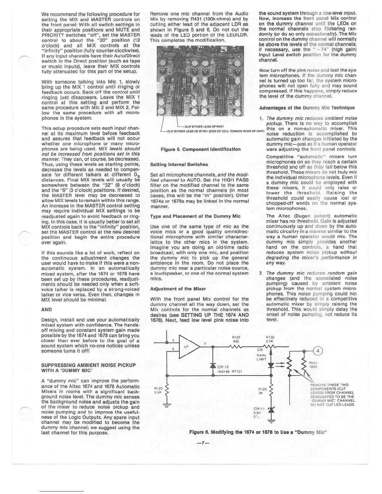 Altec Lansing 1678C SIGNAL PROCESSING - Suppressing Ambient Noise Pickup with a Dummy Mic; Dummy Mic Modification; Dummy Mic Settings and Placement; Mixer Adjustment with Dummy Mic