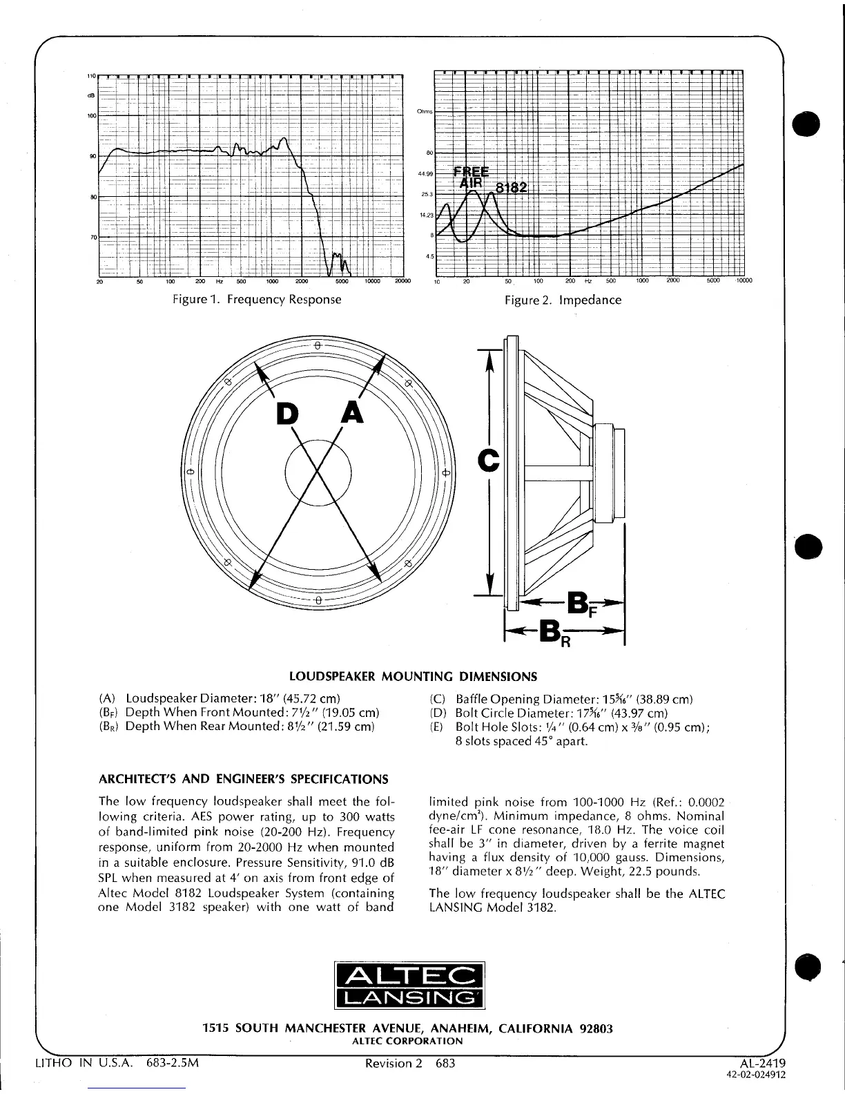 Altec Lansing 3182 LF SPEAKER - Mounting and Physical Dimensions; Architect and Engineer Specifications