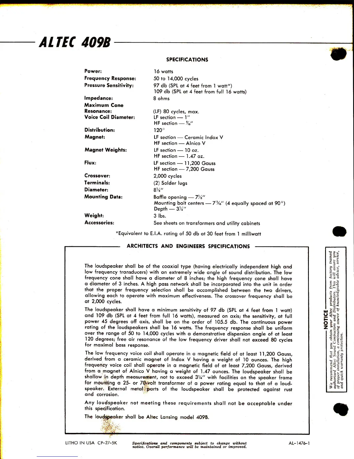 Altec Lansing 409B CEILING SPEAKER - Page 2