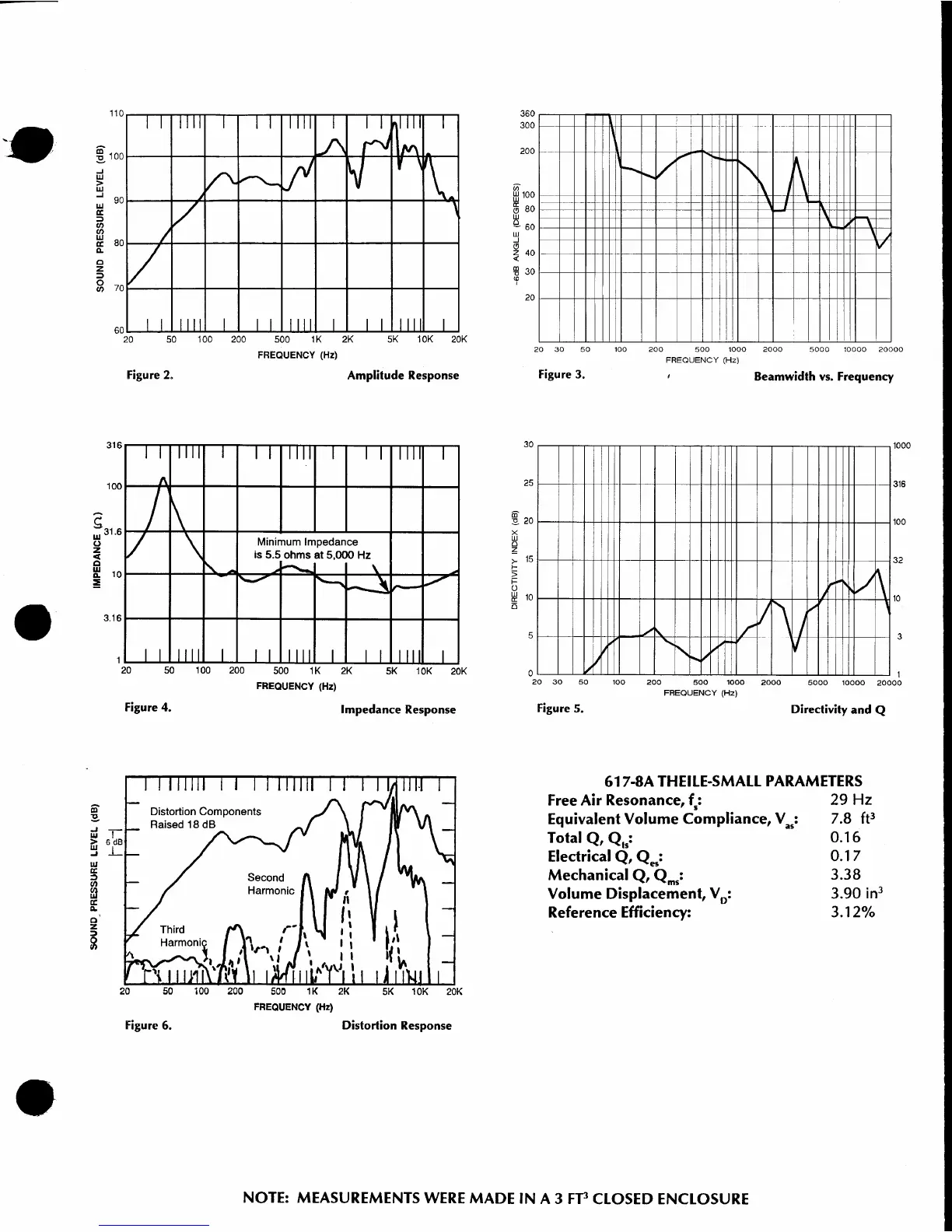 Altec Lansing 617-8A CEILING SPEAKER - Amplitude Response; Impedance Response; Distortion Response; Beamwidth & Frequency