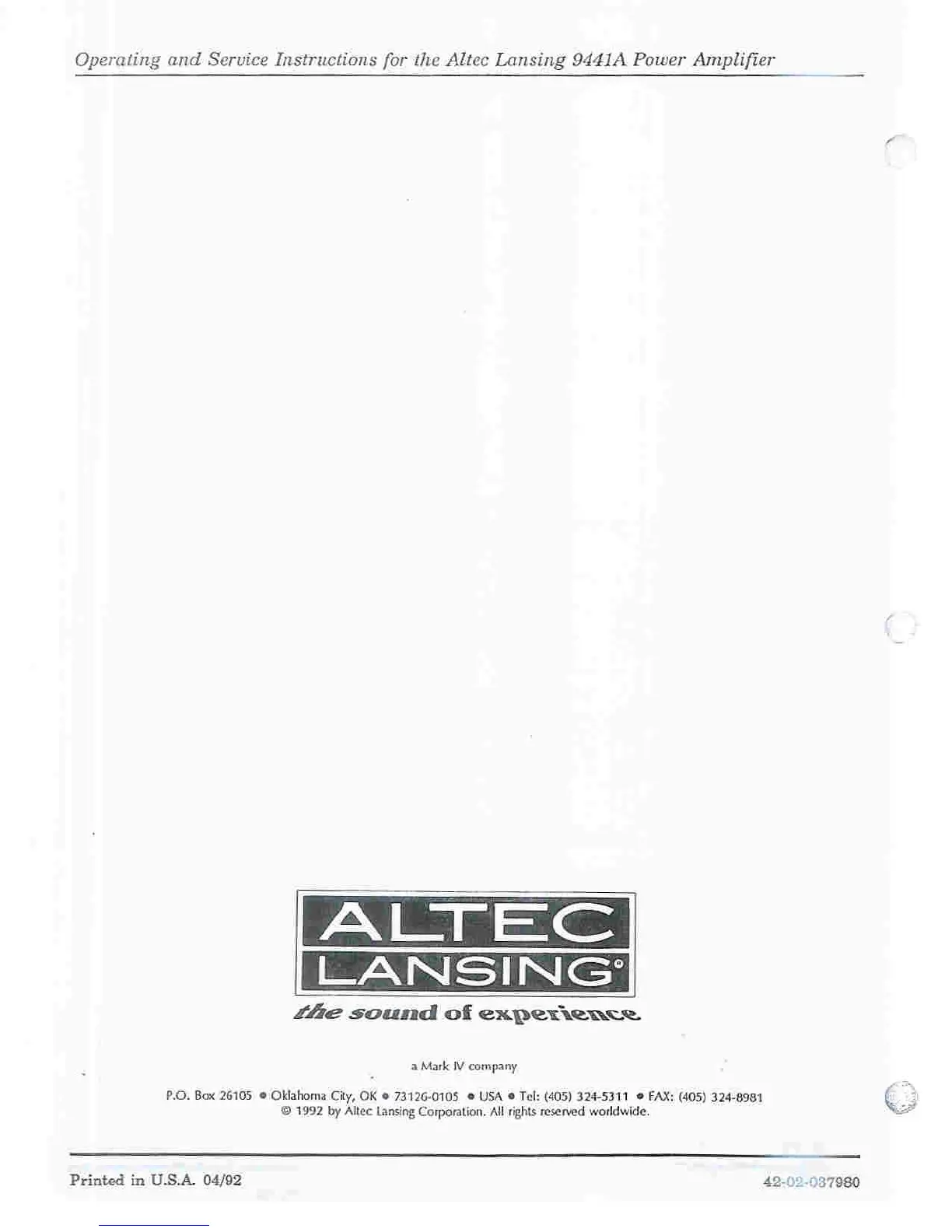 Other manuals for Altec Lansing 9441A