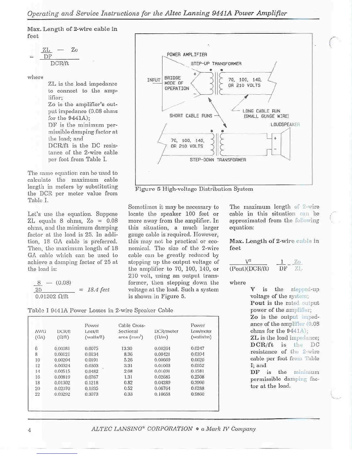 Altec Lansing 9441A - OPERATION; Dual Mode of Operation; Bridge Mode of Operation