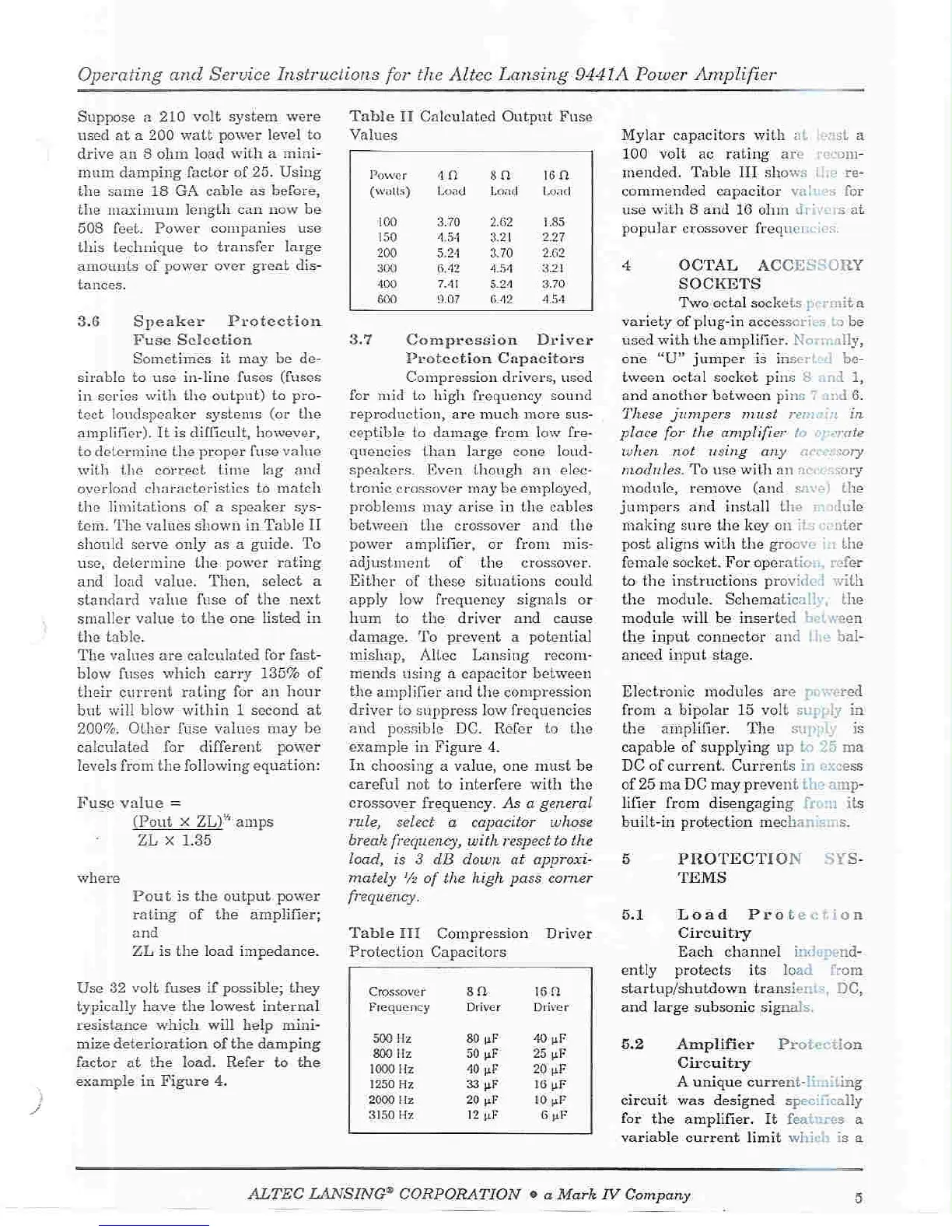 Altec Lansing 9441A - IN CASE OF PROBLEMS; SPECIFICATIONS