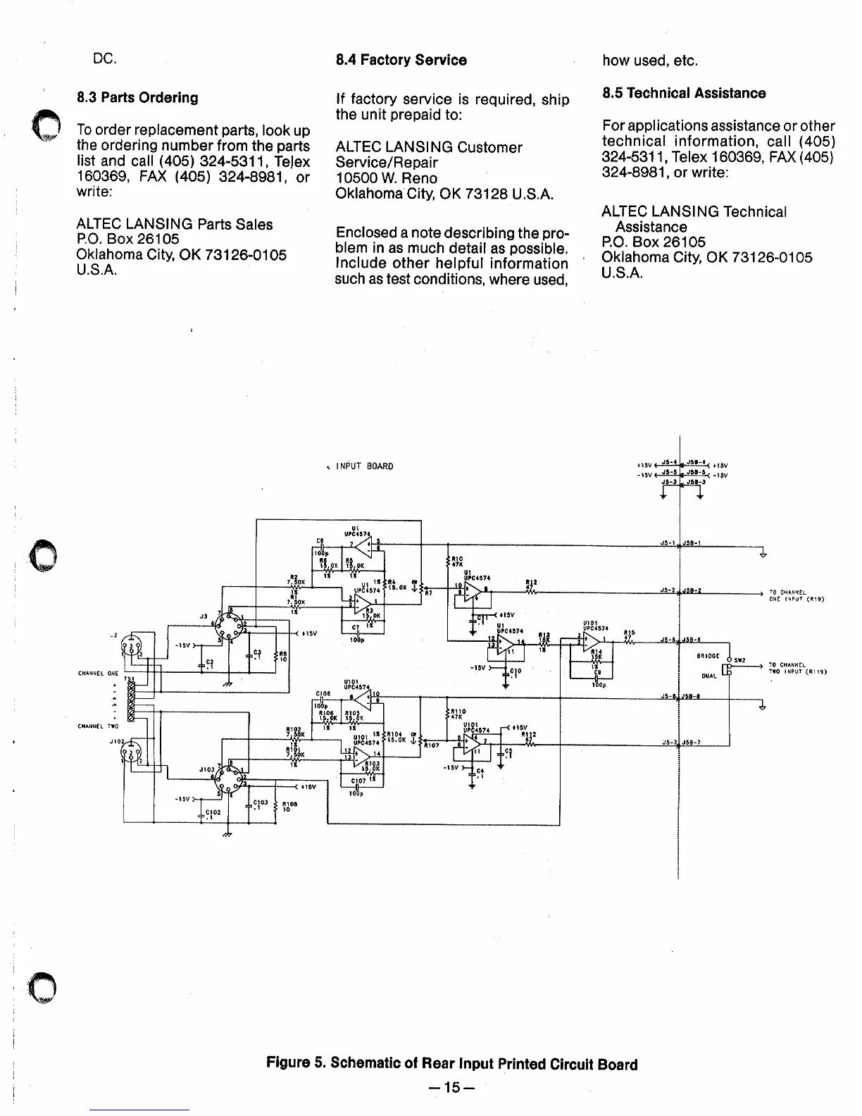 Altec Lansing 9442A POWER AMPLIFIER - PARTS ORDERING; Parts Sales Contact Information; FACTORY SERVICE; Procedure for Factory Service