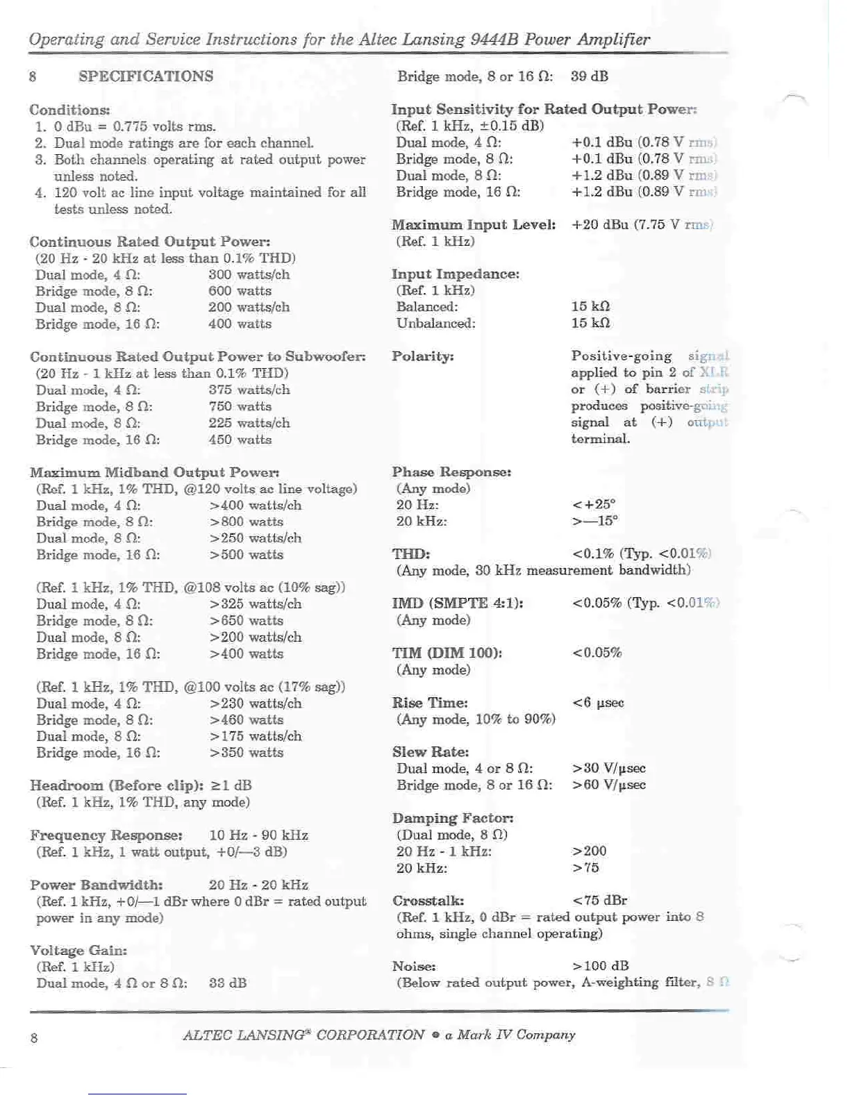 Altec Lansing 9444B - Specifications
