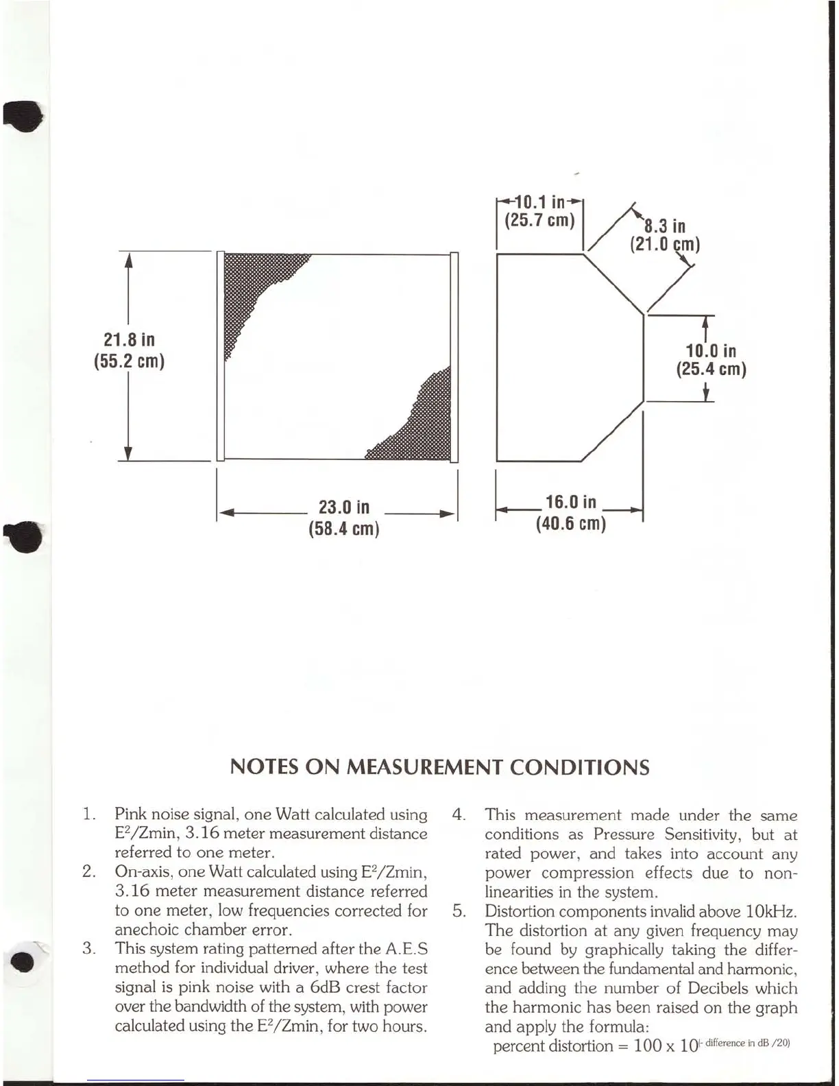 Altec Lansing 9850-8A SPEAKER SYSTEM - Notes on Measurement Conditions