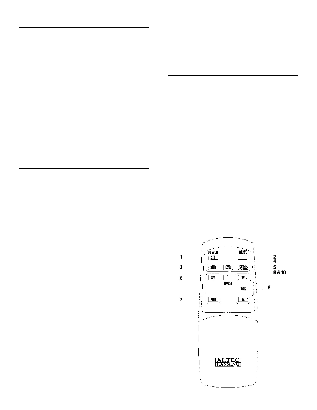 used to individually set the levels of the subwoofer (SUB), CENTER