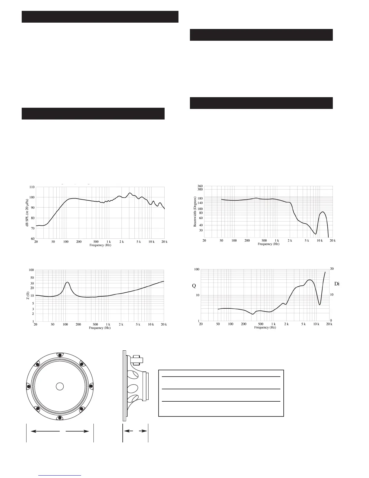 Hz +/- 5 dB with a sensitivity of 98 dB @ 1 W 1 m. All
