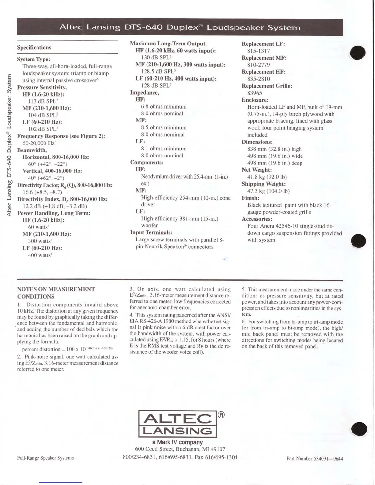 Altec Lansing DTS-640 - Specifications