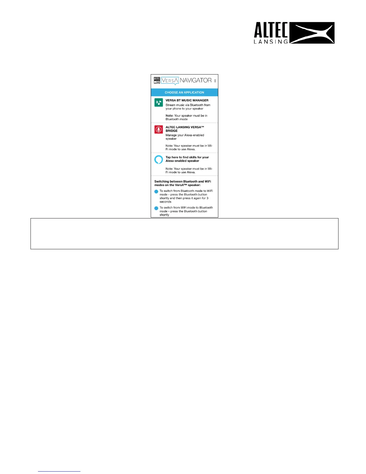 The Altec Lansing VersA™ Bridge app connects your VersA™ speaker to Wi-Fi and