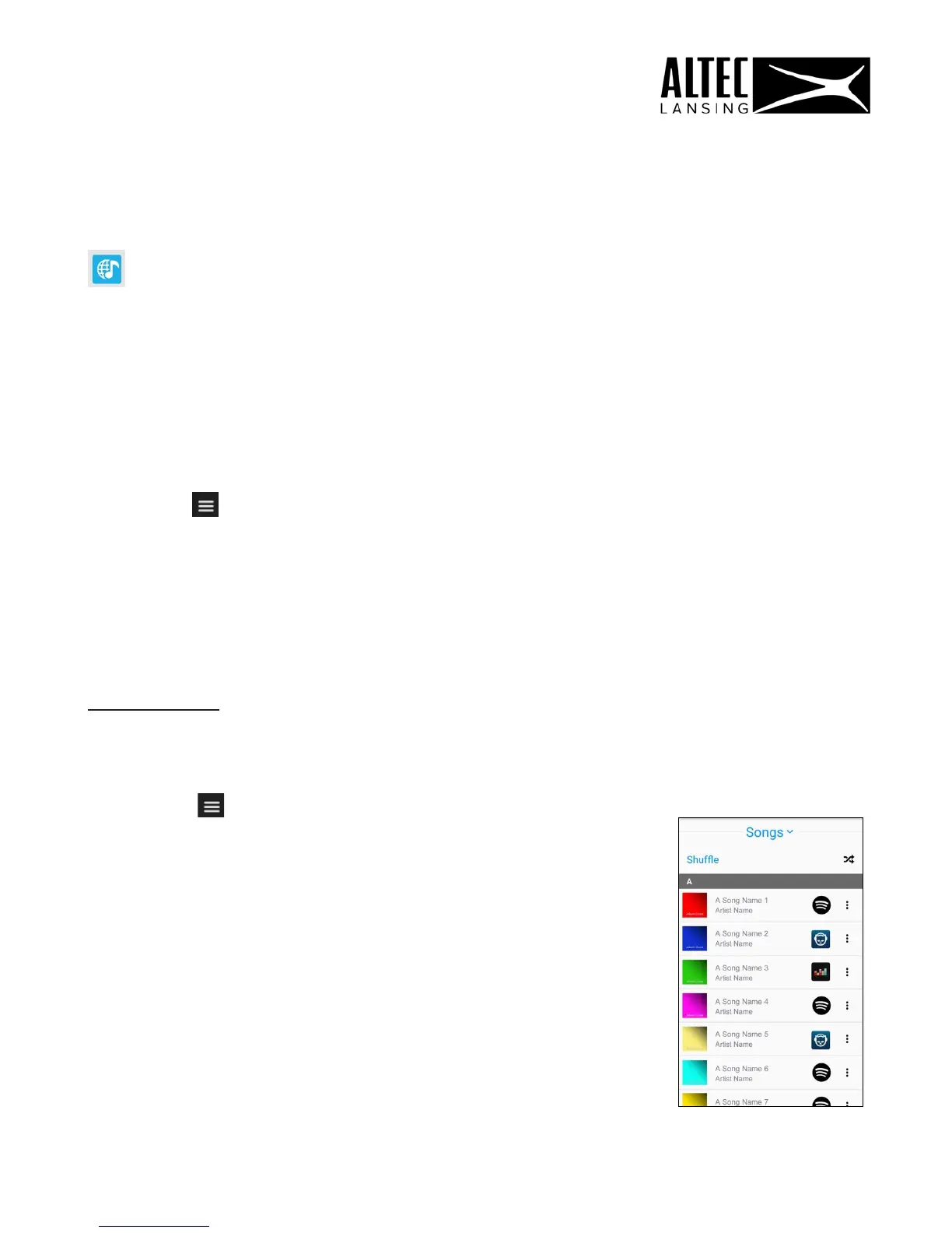 • Tap the Main Menu button and then tap All Music. The ‘Songs’ view opens by
