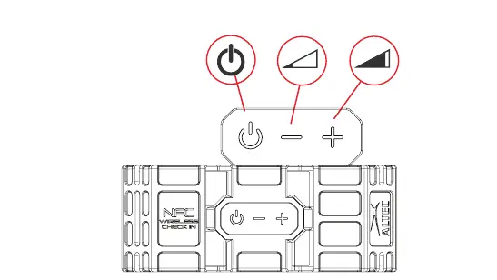 5. To power on your speaker, press and hold the “ ” ON/OFF button for about