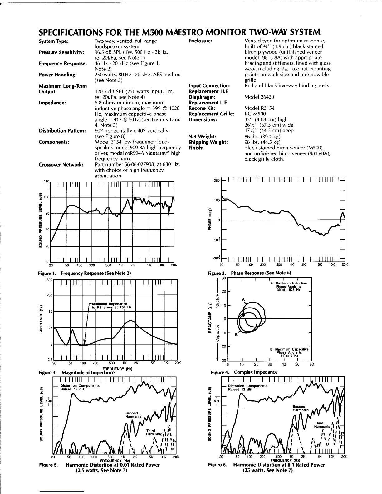 Altec Lansing M500 - Specifications for the M500 Maestro Monitor Two-Way System