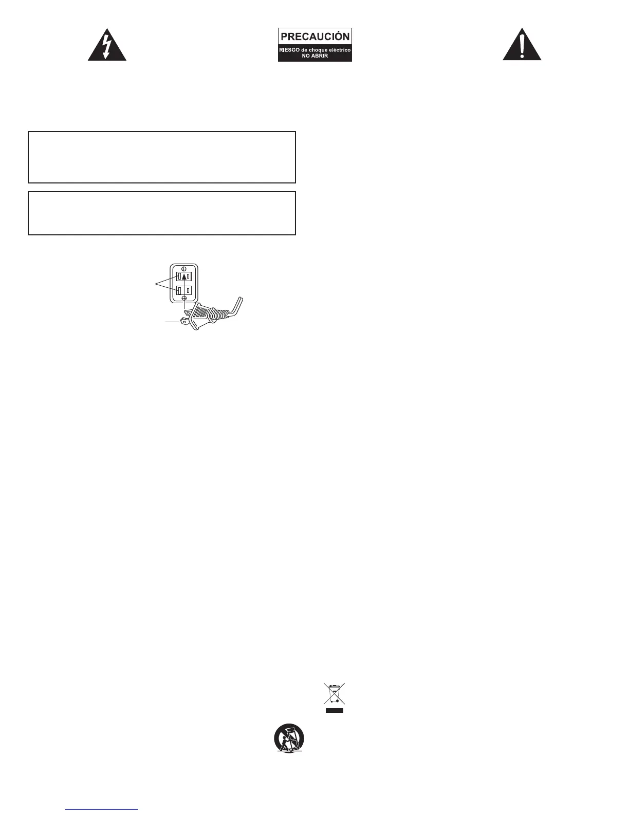Precaución: Para evitar el riesgo de choque eléctrico,