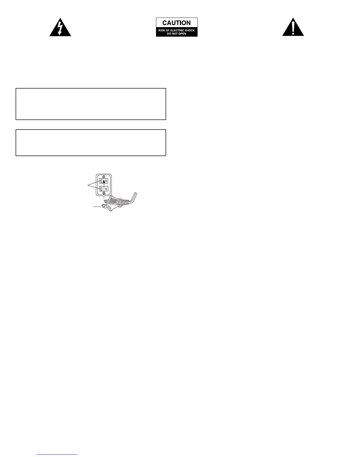 Caution: To prevent the risk of electric shock, do not