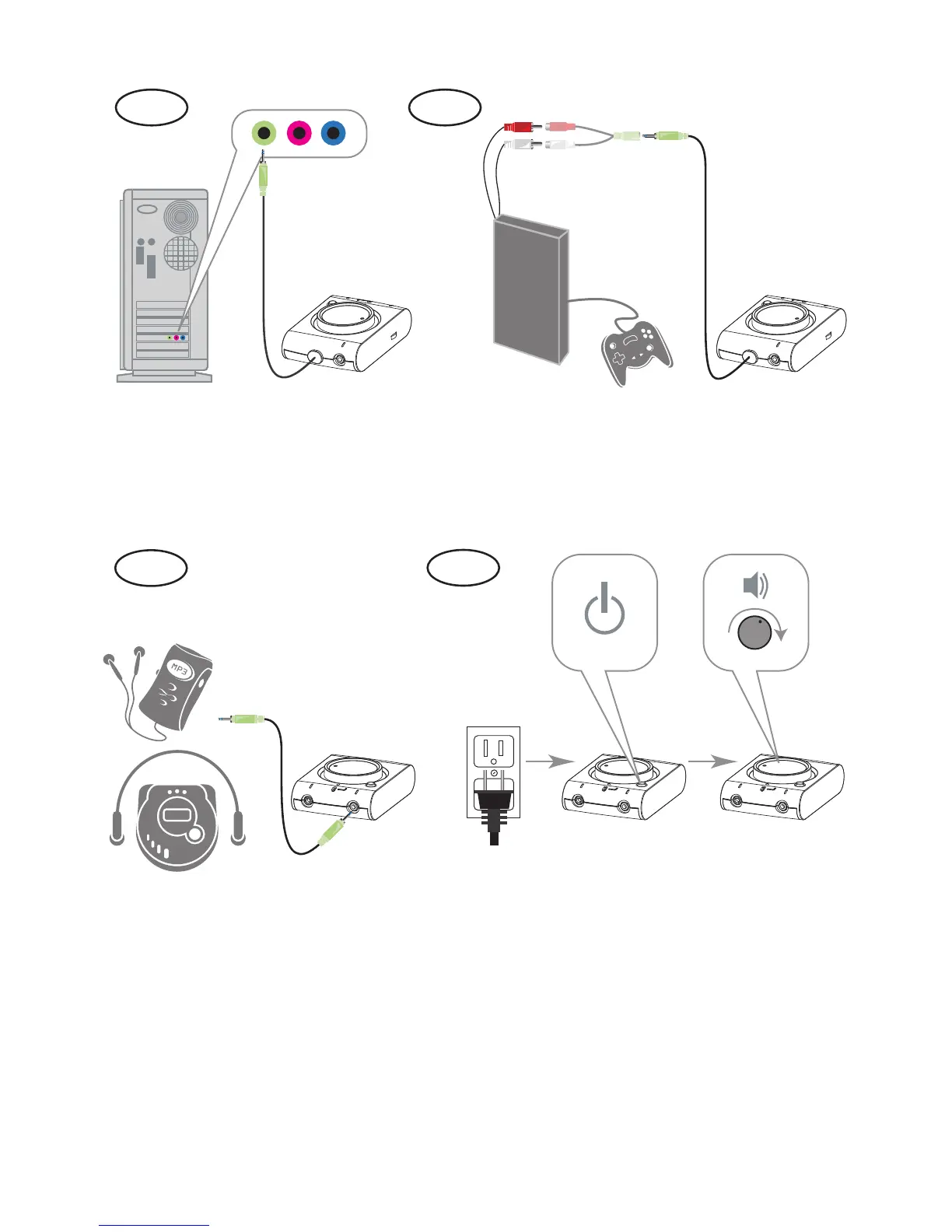 Altec Lansing VS2421 - QUICK CONNECT CARD - Audio Source Connections and Operation; Step 4 A: Connecting to a PC; Step 4 B: Connecting to a Game Console; Step 4 C: Connecting to an MP3 Player