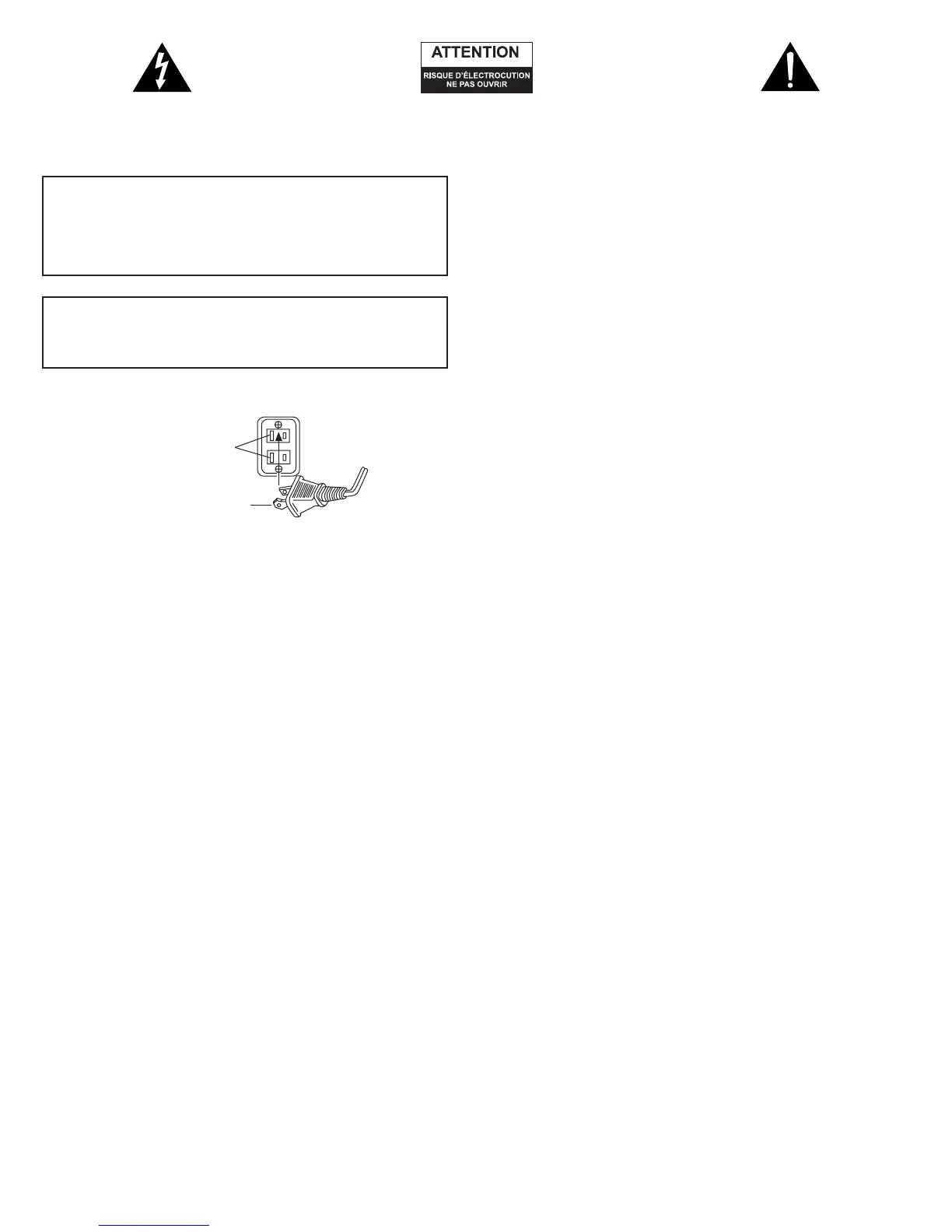 Attention : Pour prévenir tout risque d’électrocution,