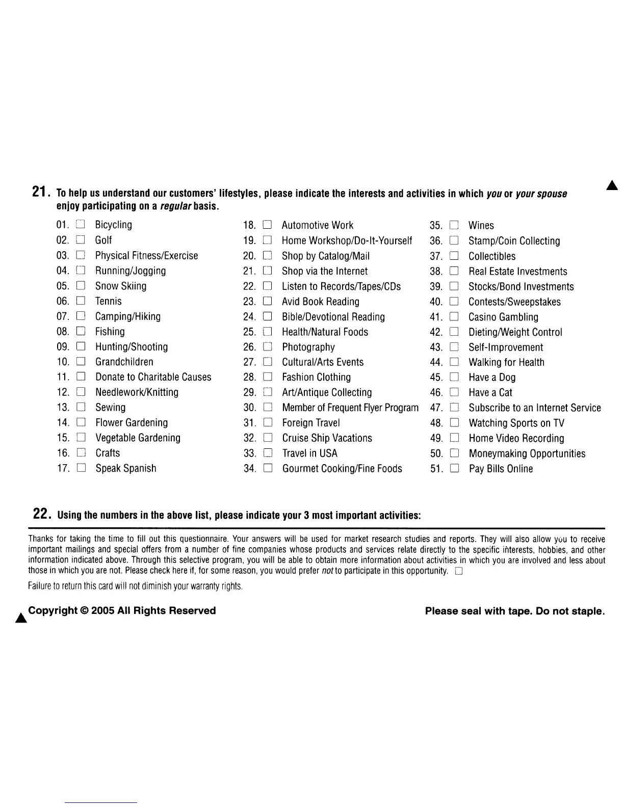 Please seal with tape. Do not staple.