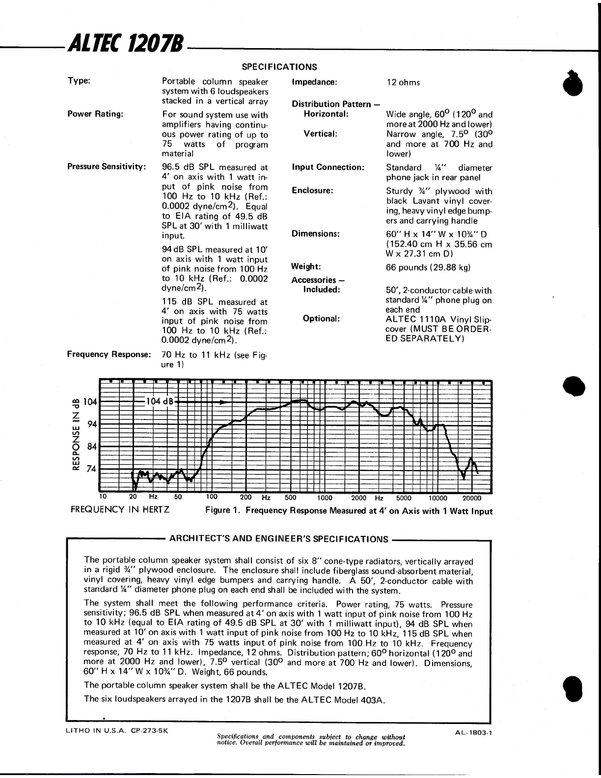 Altec 1207B SPEAKER SYSTEM - Page 2