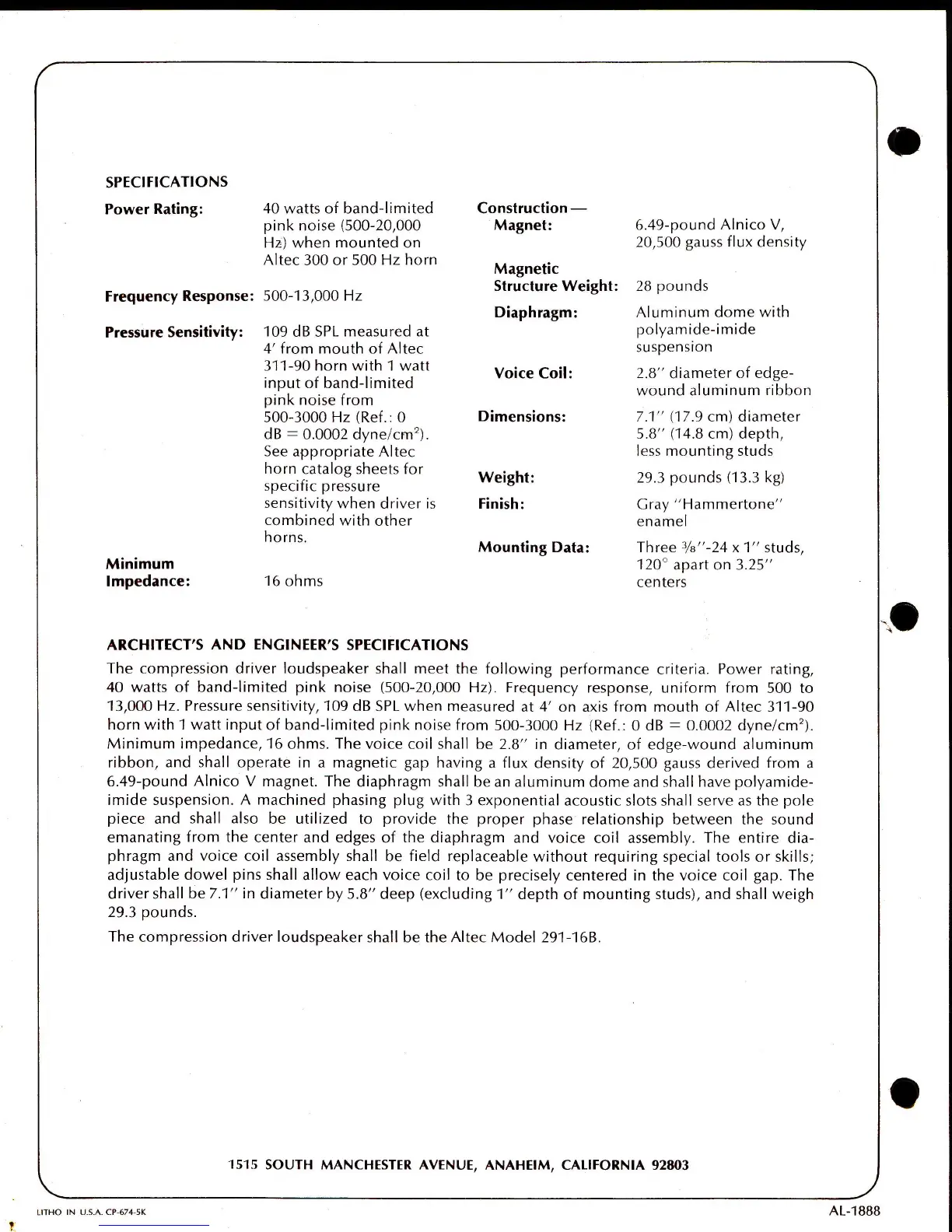 Altec 291-16B HF DRIVER - Page 2