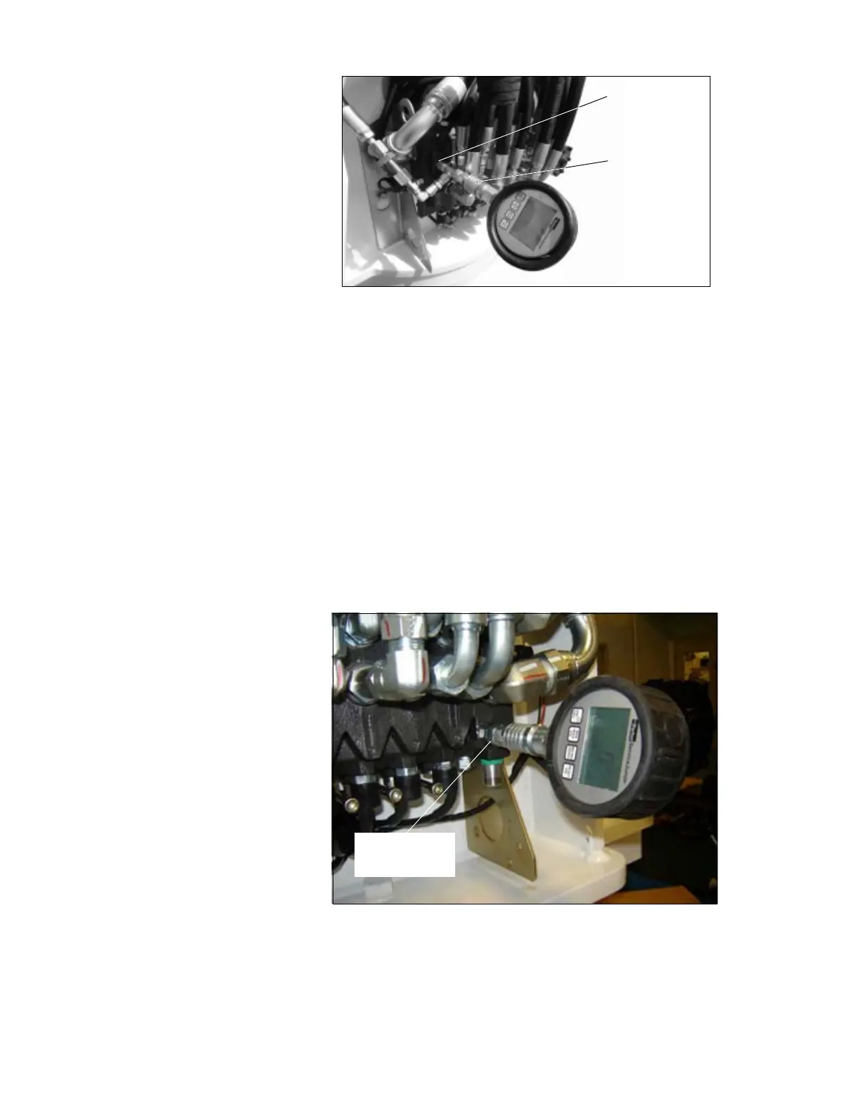 6. Turn off the engine. Leaving the pressure gauge turned on, remove it from the tank