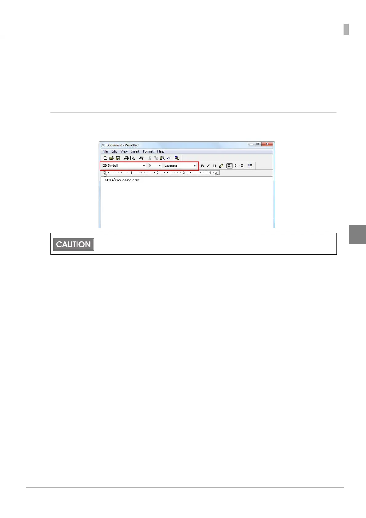 Specify the selected 2D symbol font, specified point and language to the printing data, and print it.