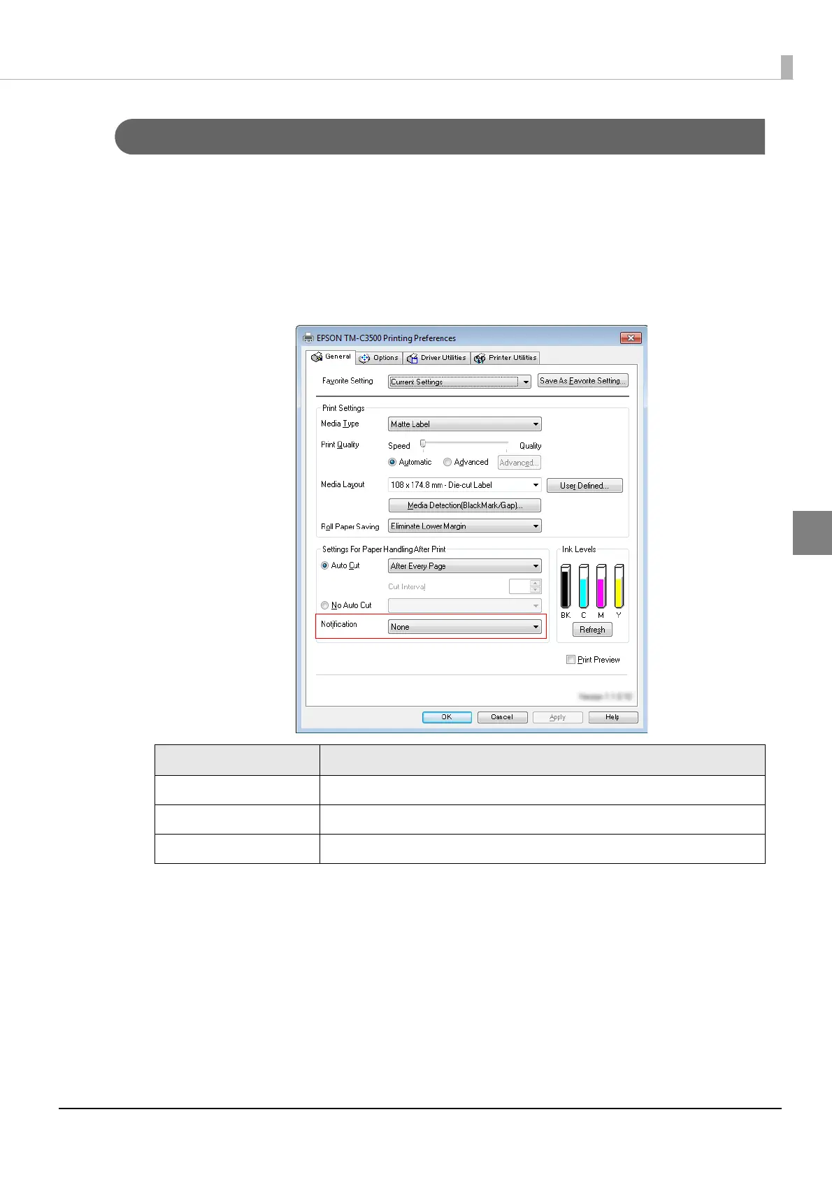 Display the printer driver window.