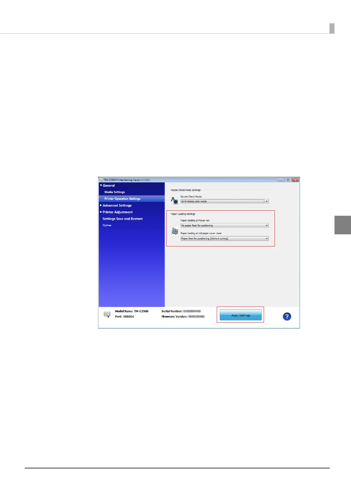 TM-C3500 PrinterSetting window appears. Select [General]-[Printer Opera-