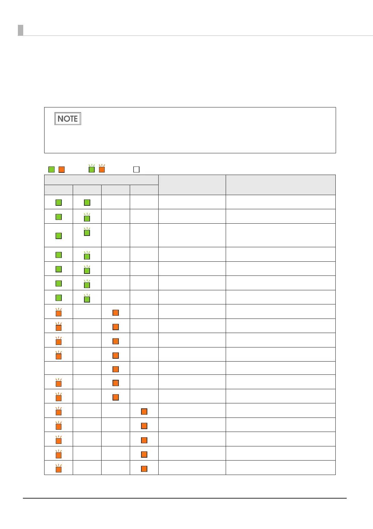 / : Lit up / : Blinking : Off — : No change ## : Error code