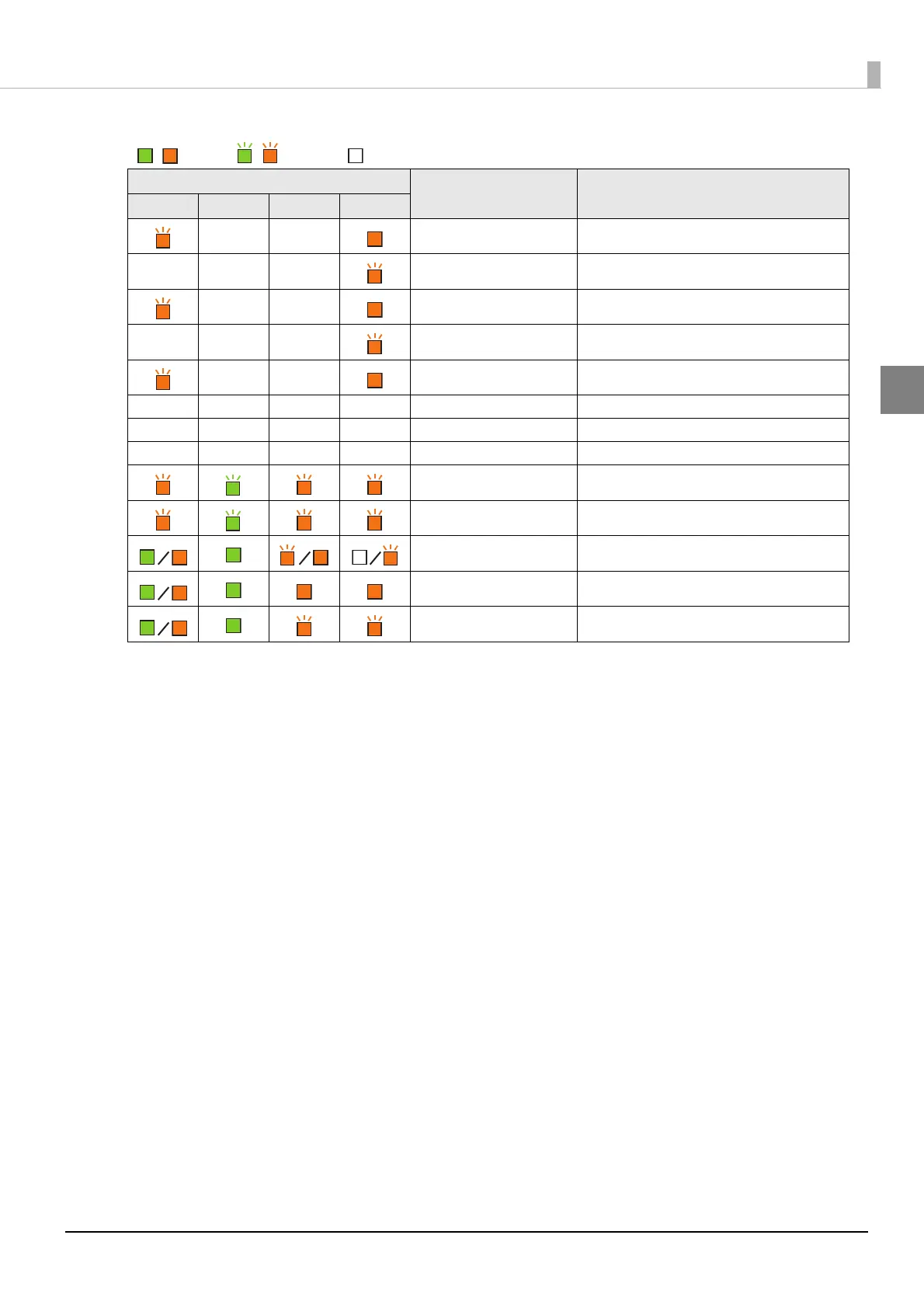 / : Lit up / : Blinking : Off — : No change ## : Error code