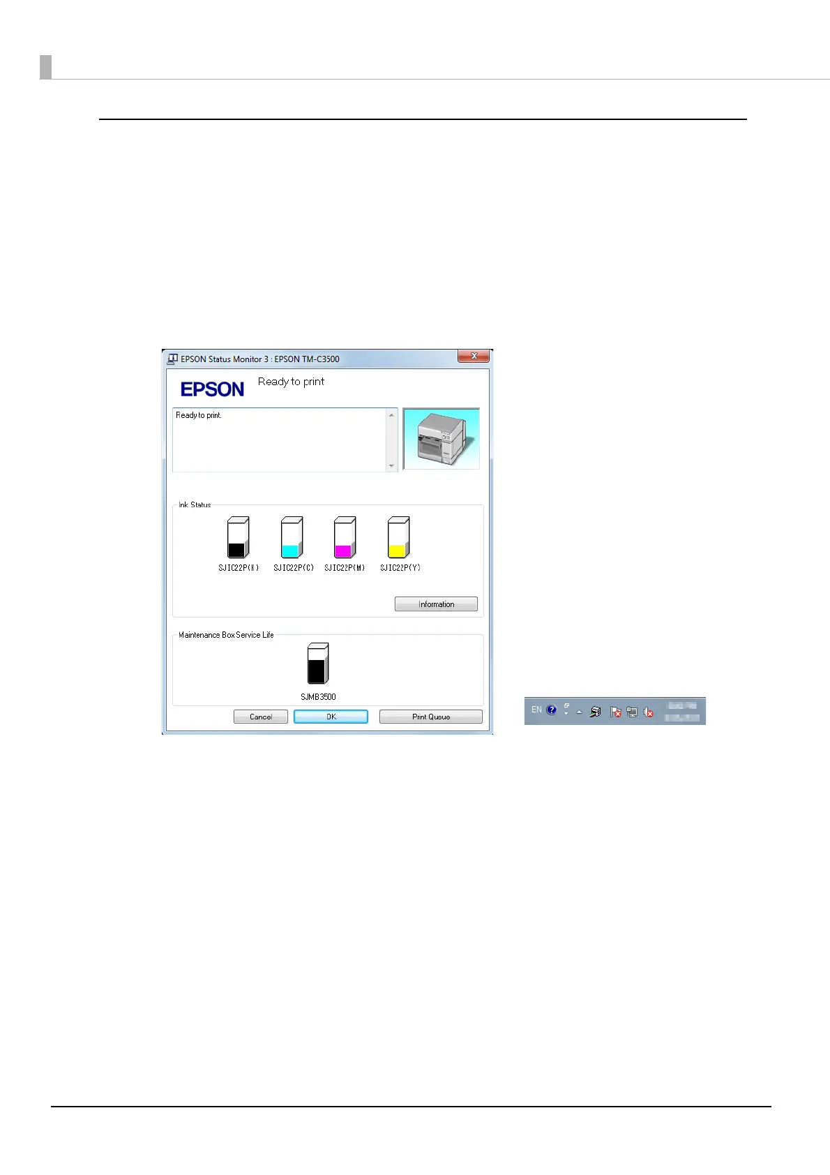 •Clicking the icon for [EPSON Status Monitor 3] on the task tray allows you to display [EPSON Sta-