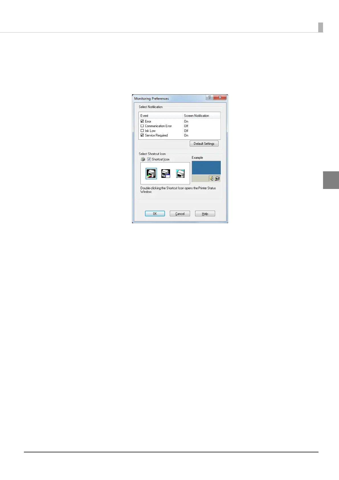 (See Error notification setting for [Not use EPSON Status Monitor 3] on page 58.)
