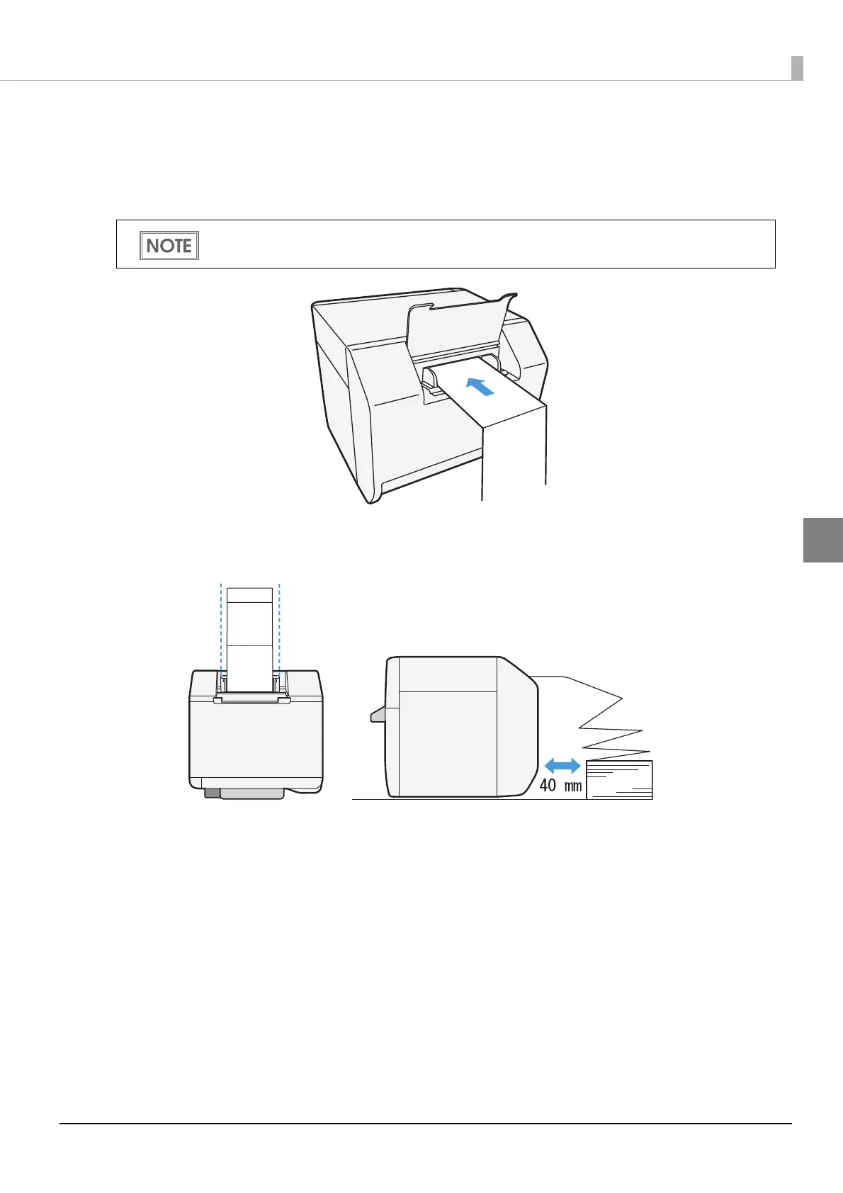Place the stack of fanfold paper straight at least 40 mm {1.57"} away from