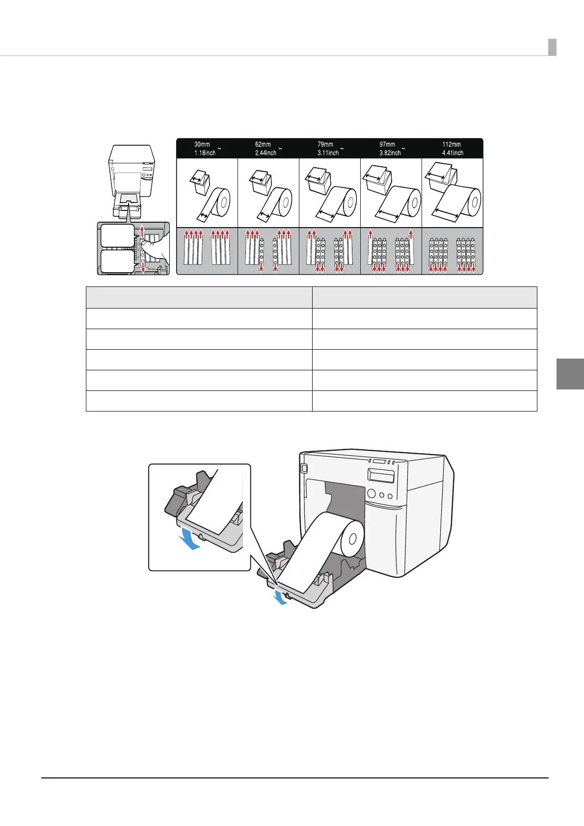 79 mm {3.11"} or more, less than 97 mm {3.82"} Open only the 2 most inward shutter rows.